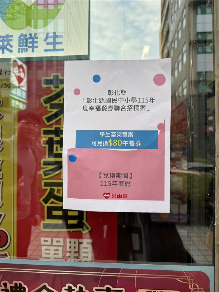 彰化縣政府關心學童營養與成長,寒假照顧不打烊,115年寒假持續推動「幸福餐券」政策,讓弱勢學生在假期也能安心享用營養餐食。縣府透過數位化幸福餐券機制,學生只要持本縣數位學生證,即可至合作之便利商店或超市兌換餐點,確保孩子寒假期間吃得飽、吃得好,營養充足生活好。 為照顧學子營養,幸福餐券自去(114)年寒假開始調整為70元。合作超商包含萊爾富便利商店、OKmart來來超商、台灣楓康超市及統一超商,學童只要持本縣數位學生證至合作的便利商店或超市就可以領取餐點,感謝超商響應加碼,學童用70元的價錢,就可以兌換到80元的優惠套餐或便當,用滿滿的愛心溫暖孩子的寒假生活。 教育處表示,為妥善照顧學生假期生活,舉凡低收入戶、中低收入戶、家庭突遭變故或經由導師家庭訪視所認定的學生,都能領取幸福餐券。今年與縣府簽約之超商,門市遍布各社區,是大家的好朋友、好鄰居。感謝合作超商積極配合縣府推動「數位化幸福餐券」政策,秉持企業社會責任的公益回饋精神,為孩子用心搭配各種優惠套餐。縣府團隊與企業協力合作,期許每位孩子都擁有充實、健康又快樂的假期。