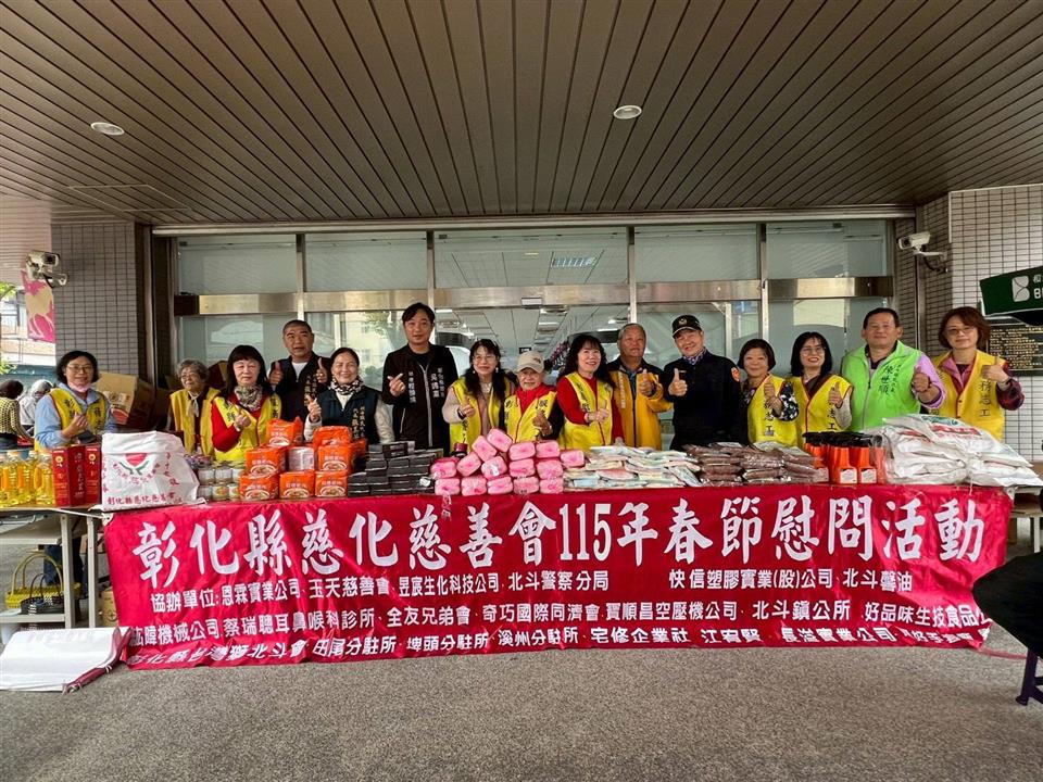 低溫持續特報發布,春節腳步也逐漸接近,但對貧困獨居長者與社會弱勢家庭而言,寒冷氣候更顯孤單與無助,為傳遞社會溫暖、落實弱勢關懷,慈化慈善會特別發起「寒冬送暖春節慰問活動」,並結合彰化縣警察局北斗分局協助訪查北斗鎮及田尾、溪州、埤頭等四鄉鎮之急需協助民眾,盼在歲末年終之際為弱勢族群帶來實質幫助與精神慰藉。 本次活動由北斗分局第一組組長許在琨、慈化慈善會會長劉宸造共同策劃,並結合警察志工中隊長黃旗旺、北斗義勇警察及民防人員等團隊力量,於1月31日上午9時至11時在北斗鎮公所廣場前舉行第一場慰問活動,現場除發放民生物資與食品外,亦安排關懷互動,讓受助家庭在春節前夕感受到社會的關懷與溫暖。 北斗分局長楊志源表示,「寒冬送暖」活動主要目的在於透過實際物資協助,讓獨居長者及弱勢家庭在春節期間能過個安心、溫暖的新年。他強調,警察身為「人民保母」,除了維護治安與交通安全外,若發現亟需救助的民眾,也會主動協助通報急難紓困管道,讓弱勢族群能獲得及時援助。