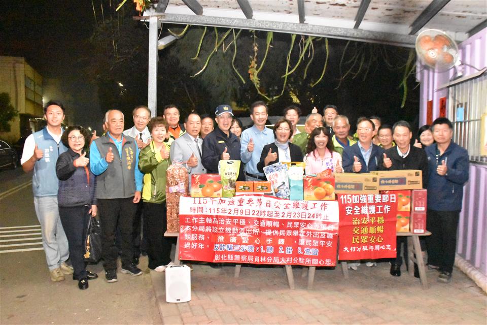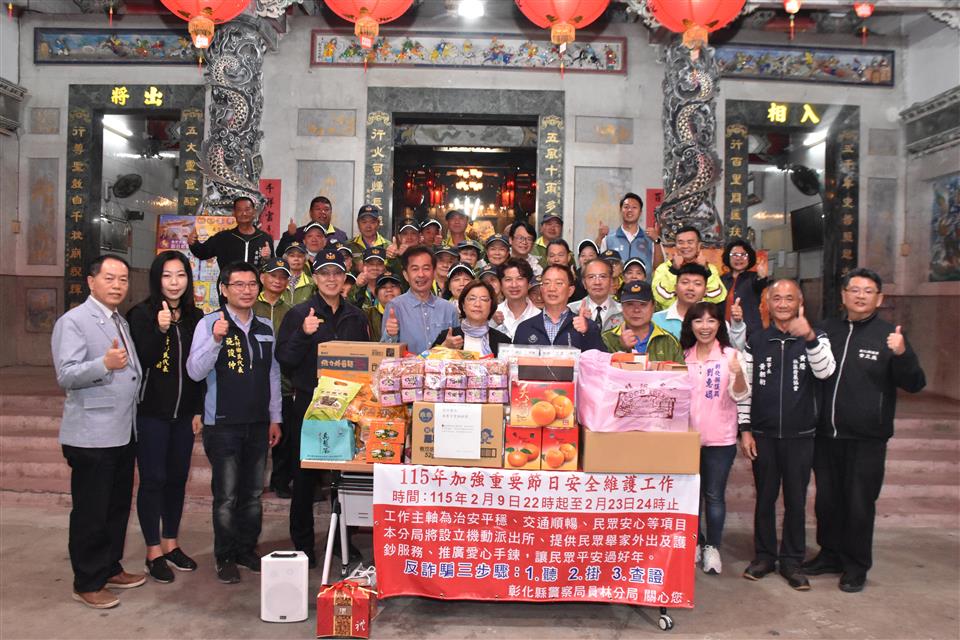 為慰勞春節前夕堅守崗位、辛勞付出的警察同仁與協勤民力,彰化縣縣長王惠美於2月4日晚間,特別召集警察局局長、警友會理事長、義警、義交、民防、志工及守望相助隊等六大民力大隊長陪同下,前往員林分局轄內10隊守望相助隊實施慰訪。王縣長逐一向第一線員警及協勤民力表達關懷與感謝,肯定大家在維護治安、交通順暢及為民服務等各項工作上的辛勞付出,並致贈精美慰問品及年節禮品,感謝警民長期攜手合作、無私奉獻,共同守護縣民安全,讓民眾安心過好年。 115加強重要節日安全維護工作自2月9日起至2月23日止,為期15天,本次春節警方將加強交通疏導作為,尤其台76線林厝交流道及員林交流道為假期常見壅塞路段,呼籲用路人多加利用替代道路。另外警方也提醒,民眾如有舉家外出安全維護或護鈔需求,可向轄區派出所申請協助。 員林分局表示,本分局及民力團隊將本著「守望相助、不分你我」的精神,守護社區安全,透過靈活、有效率的勤務編排,提供優質的服務,讓民眾有一個平安快樂的春節假期。