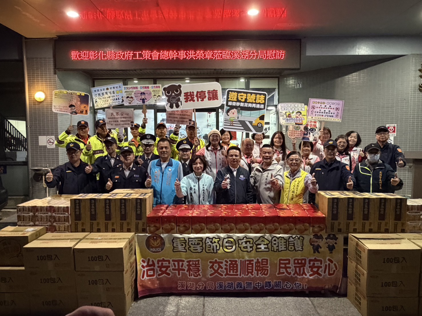 115 年加強重要節日安全維護工作自本(2)月9日22時起至23日24時止,為期15日。彰化縣警察局在縣長指導下,全面整合義警、民防、義交、志工及守望相助隊等協勤民力,以「治安平穩、交通順暢、民眾安心」為主軸,全力打造安心過節的治安環境,讓民眾平安、快樂過好年。 為向執行節日安全維護任務的警察同仁及協勤民力表達支持與慰勉,工商發展投資策進會總幹事(前副縣長)特於春節前夕代表縣長前往溪湖分局轄內各守望相助隊慰問,並由多個民力團隊幹部共同陪同。總幹事對第一線員警與協勤民力在治安維護、交通疏導及社區服務上長期投入表達高度肯定,並致贈精美慰問品與年節禮品,感謝大家為維護縣民安全所付出的努力讓現場的員警與民力團隊成員深感溫暖,並更增強了大家的士氣與凝聚力。 總幹事洪榮章表示,春節期間返鄉與觀光人潮眾多,警方及民力團隊更要秉持「守望相助」精神,強化巡邏、提升見警率,並落實交通疏導及治安防制勤務,以靈活調度與高效整備,提供縣民最穩定、最安心的服務,讓彰化鄉親都能度過安全、溫馨、愉快的春節假期。 溪湖分局表示,後續將依節日期程逐步加強轄區治安場域巡守,包括大眾運輸場站、人潮集中地點及治安熱點,並與民力團隊保持密切合作,確保整體安全維護工作順利推動,持續建構更安全、更具韌性的社區環境。
