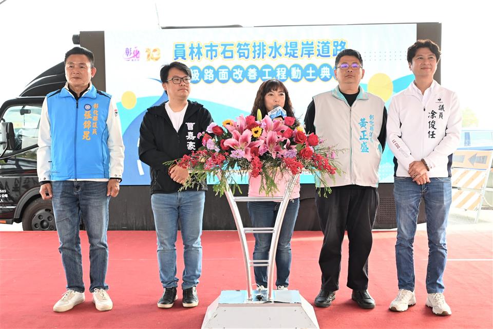 員林市公所今(2/6)日上午辦理「員林市石笱排水堤岸道路等級路面(賜福橋至五汴橋段)改善工程」開工動土典禮,彰化縣長王惠美與各級民代應邀與會,員林市代理市長賴致富等人出席,賴代理市長表示,感謝王惠美縣長在過年前再送上建設大禮,過去,這段堤岸道路很多用路人在開車時很危險,特別是在橋梁銜接處就像坐雲霄飛車落差很大,還有因為斷差,很多機車也是稍微偏一下,就倒下容易發生危險,看到鄉親長期承受這樣的交通不便與風險,所以一定要改善,這次工程將大村鄉賜福橋至員林市五汴橋兩堤岸道路順平,讓大家行的更安全。 員林市代理市長賴致富表示,這項改善工程,不僅是大家引頸期盼,也承接前員林市長游振雄之前的任務,工程總工程經費4,656萬元,特別感謝王惠美縣長及縣議會的支持,縣府補助2,000萬元,以及員林市民代表會的全力支持,員林市公所自籌2,656萬元,這段道路由水防道路提升為一般道路後,道路總長6.2公里,讓鄉親更為安全更加便利。 王縣長表示,石笱排水的整治,總長約21公里,歷經15年,於民國110年完成石笱排水全線整治,有效提升防洪能力,縣府於111年將這段水防道路提升為一般道路,希望能保障鄉親行車安全且提升整體通行環境,感謝員林市公所及代表會的用心與協助,從前市長游振雄到現在的員林市代理市長賴致富,兼顧原有的水防功能,進一步提升石笱排水兩側道路改善工程約3.1公里,兩側總長度共約6.2公里,縣府與市公所經多次討論後,共同來完成,感謝議長謝典霖及議員們對預算的支持,縣市合作與府會齊心推動地方建設的決心,未來設置交通安全標線標誌,完工後不僅改善路面平整,也讓大家行的更加安全。 縣議員劉惠娟代表致詞時表示,石笱排水整治工程歷經15年終於完成,過去為防汛道路,路面容易受損且排水不良,對通勤民眾產生安全疑慮,提升為一般道路後,除了能節省很多時間成本外,更能保障行車安全。感謝王縣長縣府團隊及員林市公所的用心,改善路面品質,也補足照明設備,提升整體交通安全。 員林市民代表會主席張國良表示,感縣王惠美縣長縣府團隊對員林地方建設的用心,除了石苟排水整治外,並提升為一般道路,並建置東彰北路,提升員林市交通便捷。 大村鄉長賴志銘表示,感謝王惠美縣長、議員、員林市公所及代表會,大家一起支持石笱排水堤岸道路的建設,共同提升用路人的安全。 與會貴賓有立委陳素月、縣議員劉惠娟、張錦昆、黃正盛、凃俊任、曹嘉豪、員林市代理市長賴致富、大村鄉長賴志銘、員林市民代表會主席張國良、副主席江憲政、大村鄉民代表會主席黃錫暉、縣府水資處副處長陳炳森、縣府秘書游筑凱、賴沛然、各級民意代表及地方仕紳等。