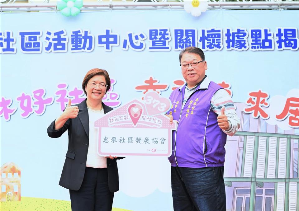 彰化縣在員林市惠來、南興社區成立第373、374個社區照顧關懷據點,縣長王惠美今(6)日上午前往社區贈揭牌慶賀。據點辦理肌力訓練、健康衛教宣導、認知遊戲、藝術創作等延緩失能的健康促進活動。王縣長感謝惠來社區發展協會理事長陳聰敏、總幹事洪榮南;南興社區發展協會理事長詹益智、總幹事莊千葉;以及所有社區幹部及志工的付出;也感謝員林市賴致富代理市長帶領的公所團隊協力推動,大家齊心讓照顧關懷據點順利成立。 王縣長表示,感謝員林代理市長賴致富上任之後的用心,逐步完成每個村里的關懷據點。彰化縣共591個村里,員林市惠來、南興社區成立了第373、374個社區照顧關懷據點,目標是每個村里都有關懷照顧據點,共同照顧長輩,讓長輩在地安養,在故鄉得到最好的照顧。在這裡,長輩可以一起運動、學習、共享營養餐食。彰化縣最長壽的長輩目前是112歲,長輩只要把身體照顧好,規律運動,都能健康又長壽。 王縣長指出,縣府積極打造高齡友善城市,規劃多項社福政策,包含長青學苑、獨居老人關懷訪視、緊急救援系統、防走失神器守護BBCall、假牙及敬老眼鏡補助。還有本縣長青幸福卡社福點數每月1,000點,可用於彰化客運、員林客運、南投客運、中鹿客運等市區公車、統聯客運及國光客運等7條路線、合約診所折抵基本部分負擔費用50元、臺鐵車資折抵、縣內觀光旅遊等。持長青幸福卡搭乘特約計程車,在中部4縣市每趟次享有85元的折抵優惠。另外,「2026花在彰化」將於2月17日到3月1日在溪州公園盛大登場,長青幸福卡縣內觀光旅遊特別開放假日期間出團(農曆大年初一至初六及和平紀念日連續假期),社區可與簽約旅行社報名,每趟次扣抵長青幸福卡社福點數300點(含責任保險),歡迎大家新年假期逗陣走春,閱覽彰化美好風光。 員林市代理市長賴致富表示,感謝王縣長縣府團隊的用心,在各村里成立關懷據點讓長輩可以放心安老,也積極建置全齡照顧0到100歲的長照大樓,同時感謝社區幹部與志工的付出。另外,員林燈會是彰化縣三大春節景點之一,歡迎大家過年期間來員林走春。 員林市惠來社區發展協會理事長陳聰敏表示,感謝王縣長、賴代理市長,以及員林市民代表會張主席長久以來持續推動、支持社區,才有這麼好的環境與場地。也因為眾人的投入,讓社區發展協會持續運作。 員林市南興社區發展協會理事長詹益智表示,感謝王縣長、賴代理市長,以及員林市民代表會張主席支持社區發展,讓社區關懷據點能照顧更多長輩。 社會處表示,惠來社區照顧關懷據點開放時間為每週五上午9時至12時,南興社區照顧關懷據點開放時間為每週三上午9時至12時,所提供服務為「健康促進活動」、「餐飲服務」及「電話問安」等。另外,彰化縣有591個村里,目前已成立374個社區照顧關懷據點,並持續積極布建新據點成立,希望長者都來社區照顧關懷據點參與健促活動達到預防失智及延緩老化、共享營養餐食服務,增進良好社交功能,達到在地安養,迎接美好的老年生活。 與會貴賓有立委陳素月、縣議員曹嘉豪、凃俊任、張錦昆、劉惠娟、黃正盛、張欣倩、議員詹木根服務團隊、員林市代理市長賴致富、員林市民代表會主席張國良、惠來社區發展協會理事長理事長陳聰敏、總幹事洪榮南、南興社區發展協會理事長理事長詹益智、總幹事莊千葉、縣府社會處長王蘭心、秘書游筑凱、賴沛然、各社區幹部、各級民意代表與地方仕紳。