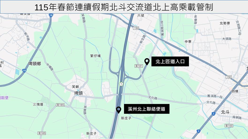 115年春節連續假期即將到來,本次連續假期長達9日。北斗警分局所轄北斗交流道北上匝道高乘載管制為2月19日(初三)及20日(初四)13-18時,並將派員於匝道入口前實施管制,未滿3人車輛禁止進入。 以往春節連續假期車潮將於初三、初四達到巔峰,如發生車多情形時,北斗警分局將立即派員即時疏導車流,並請用路人避開交通尖峰時段。 北斗警分局表示,用路人於出門及收假前,可先上網掌握交通動態及各項管制措施,亦可直撥本分局勤務中心電話:04-8882010、高速公路查詢電話:1968,或以幸福公路app、交通部官網、收聽警廣等方式查詢路況。