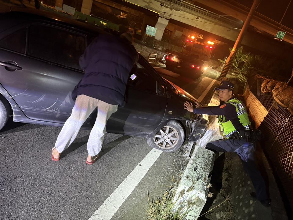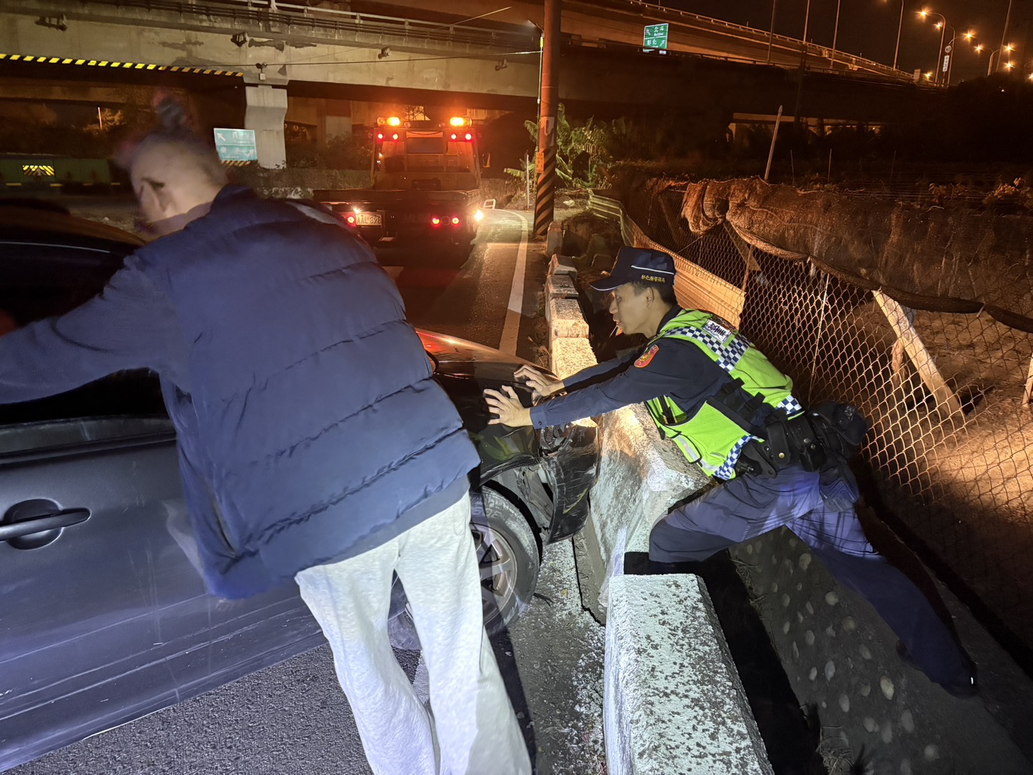 員林分局大村分駐所警員王翎華、警員洪崑堯於日前執行巡邏勤務,接獲民眾報案稱在大村鄉大崙路、柳橋東路口附近自小客車有交通事故,員警趕赴現場。 員警到場了解係自小客車駕駛操作車輛不慎自撞路旁石墩,造成自小客車動彈不得無法行駛,由於該路段路幅狹小又為出入大村鄉銜接臺76線必經之路,現場已有多數車輛堵塞,在員警通知拖吊車輛到場之餘,由員警與駕駛共同將將車輛推至路段旁空地停放並維護交通恢復順暢。駕駛對於警方能主動伸出援手,深深感受警察的敬業與熱心,相當感謝警方仗義協助之精神。 本案員警秉持「視民如親」精神,於事故現場主動協助排除障礙、推移故障車輛,迅速恢復交通順暢,並以實際行動展現溫馨警力與為民服務的熱忱,深獲現場民眾肯定,也樹立警察正面形象。