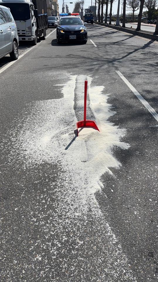 疑似路過之自小貨車載貨綑綁不確實,行進間車輛所載運之白米不慎彈出掉落路面,險些致後方車輛因閃避而與其他車輛發生交通事故,員警路過發現主動協助清除恢復道路通行。 鹿港分局頂番派出所警員藍文亮,日前執行巡邏勤務時,於12時51分許接獲通報在鹿港鎮鹿東路2段附近,車道上有掉落物(白米),而路過汽機車深怕壓到會造成車輪滑倒紛紛左右閃避,造成該路段險象環生,藍員獲報便立即驅車前往察看,當抵達現場見狀考量其他路過駕駛人之安全,車用警車阻擋當警戒外,另主動與熱心民眾一同協助將白米清除,俟該路段車流量恢復通暢後才駛離繼續執行巡邏勤務,事後經過之駕駛人及附近居民見員警積極主動處事態度感到相當窩心,進而讚美員警的義行表現。 本案警員藍文亮處理事故態度積極,及時協助處理,發揮同理心精神,民眾對警方作為表達高度肯定與感謝,充分提升警察的正面形象。
