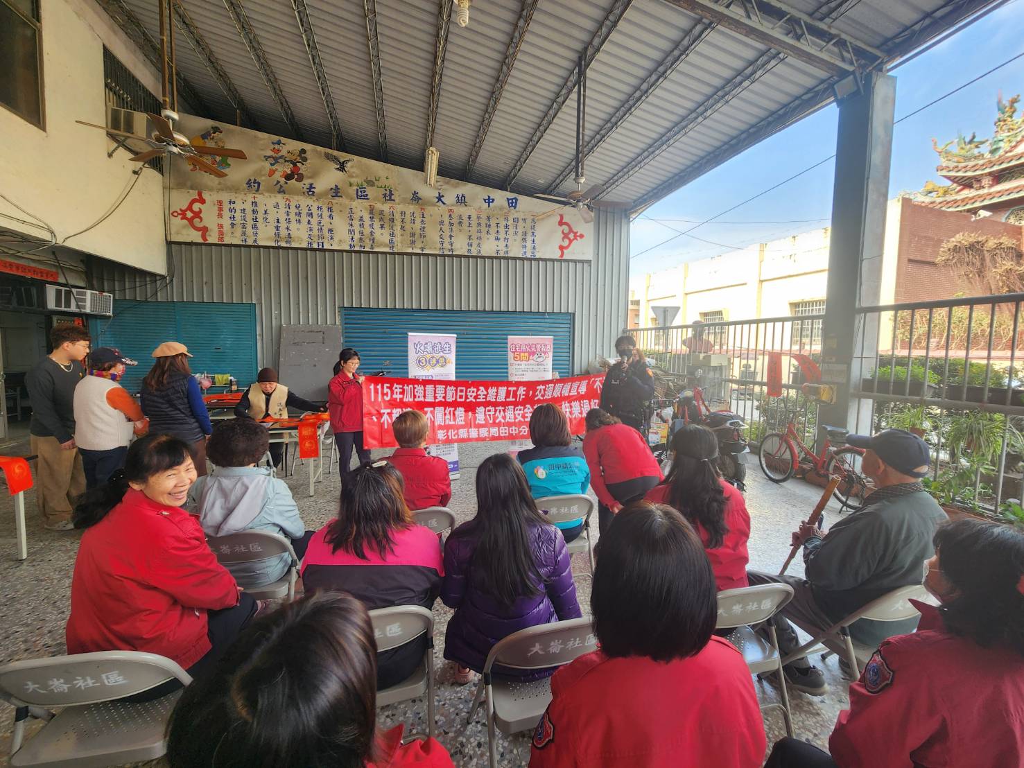 春節將至,為確保里民安心過好年,彰化縣警察局田中分局田中派出所於上週末前往大崙里民活動中心,舉辦「115年加強重要節日安全維護工作」宣導活動,推廣田中分局「舉家外出巡邏服務」及「大額護鈔」等暖心措施,落實「治安平穩、交通順暢、民眾安心」三大工作主軸,並針對近期高發的詐騙手法,如:假投資、假網購、假冒中獎通知等,傳授隊員與里民「識詐小撇步」,並提醒每一位守望相助隊的夥伴都是社區守門員,若發現鄰里間有陌生人徘徊、或長輩神情緊張地操作 ATM,應發揮守望相助精神上前關懷,或立即撥打 110 或 165 專線尋求協助,透過與守望相助隊的緊密配合,鞏固社區安全防護網。 田中分局分局長林鼎超表示現今詐騙手法多變化,長者常成為詐騙集團鎖定的目標,為守護長者的財產安全,詐騙集團常以「穩賺不賠」、「涉及刑案」、「操作ATM退款」等話術來騙取民眾辛苦錢,提醒大家謹記「一聽二掛三查證」的口號,以保障自身財產安全。