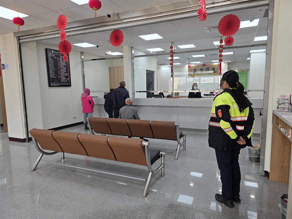 農曆春節將屆,年節前後民眾現金需求大,金融機構及提存大量現金的民眾易成為歹徒覬覦的對象,芳苑分局為維護轄區各金融機構安全維護及民眾提領現款安全,於2月11、12、13、23日,每天8至16時派遣警力於轄區各金融機構駐守,執行「金融機構安全維護及防搶」專案勤務,以防制治安事故發生,讓民眾安心過好年。 芳苑分局分局長黃一航表示,春節前後除了加派警力於各金融機構駐守外,並提供「護鈔」服務,公司行號、民眾若有大額存領款項可向警方請求提供護鈔服務,請民眾多加利用,可直撥「110」或分局服務電話04-8958110或洽當地分駐(派出)所申請亦可。