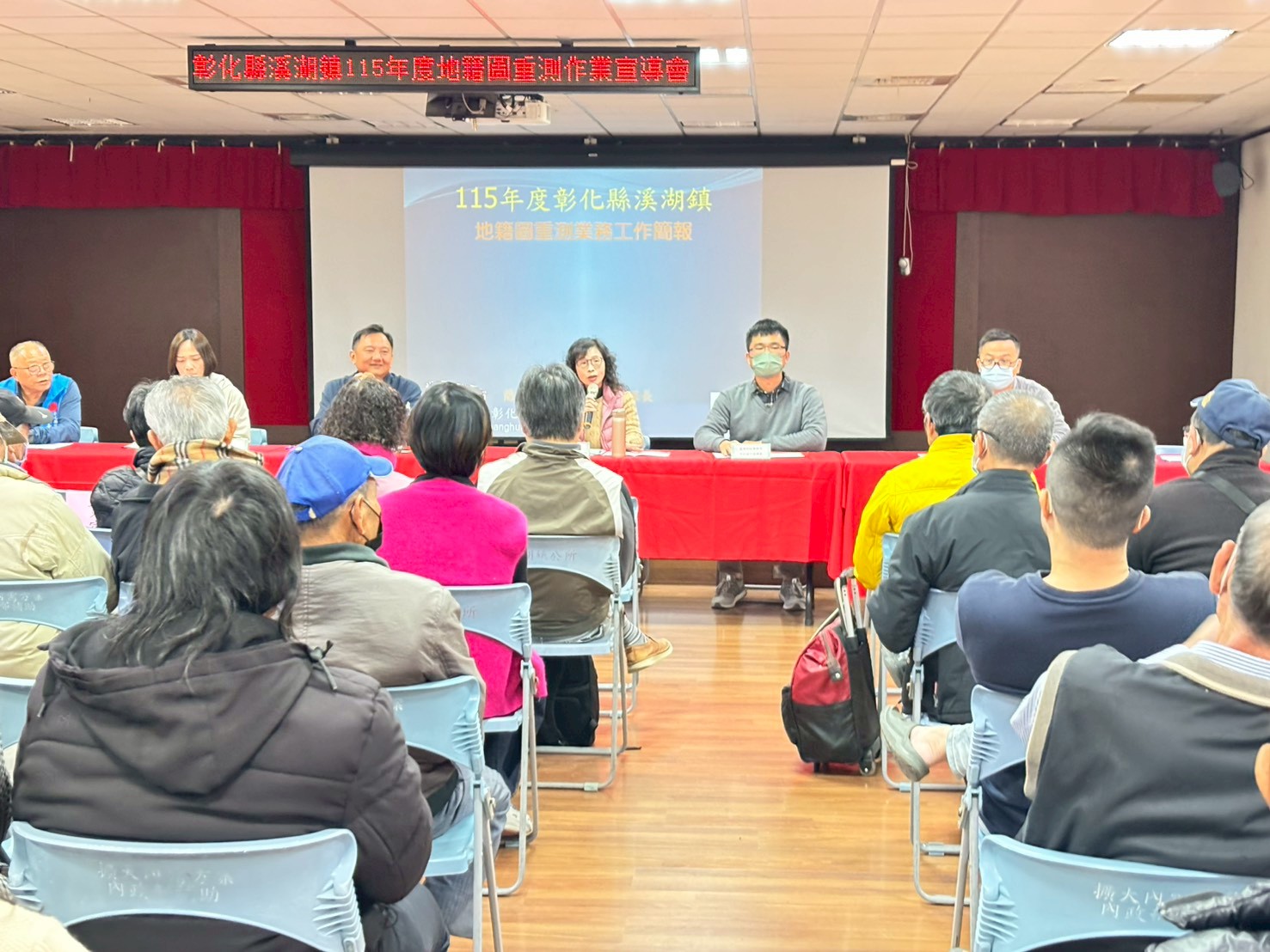 115年度地籍圖重測作業說明宣導會於115年2月9日(星期一)下午2時假彰化縣溪湖鎮鎮公所三樓會議室舉辦,重測區內土地所有權人出席相當踴躍,溪湖鎮公所主任秘書顏明亮等貴賓都與會列席指導,場面熱絡。 115年度溪湖鎮地籍圖重測區為溪湖鎮鳳山段及西寮段都市計畫外土地,總計914筆,面積66公頃,土地所有權人約200人到場參加宣導會,透過影片播放、有獎徴答及座談交流等多元方式,向土地所有權人詳細說明相關法令規定、應配合事項及應注意之重要資訊。 宣導會現場十分熱烈,會中座談時間,土地所有權人提出許多寶貴土地政策建議及重測問題,該所主任、測量課代理課長、縣府測量科技士與在場服務人員均一一詳細解說,使民眾充分瞭解並獲得好評。 溪湖地政事務所黃麗卿主任於宣導會中說明,地籍圖重測是確保土地界址與面積精確的重要工作,關係到土地所有權人的權益與未來發展,更提醒土地所有權人接獲地籍調查通知書時,親自或委託他人到場指界,以確保自身土地權益。 業務單位:溪湖地政事務所 聯 絡 人:楊先生 電 話:8813119#309