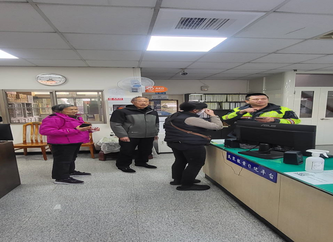 員林分局東山派出所日前接獲熱心民眾報案,指稱有迷失老人需要協助。東山派出所警員林宏彥、李堃銘獲報後立即趕赴現場關心處理。經了解,該對年長者為劉姓夫妻,係來自中國江西省,近期來台探親。當日夫妻兩人利用空檔在住處附近散步熟悉環境,未料因人生地不熟,加上對周遭路況不熟悉,一時迷失方向,找不到返家路途。兩人語言及環境適應上亦有困難,情緒顯得焦急不安。 員警先行安撫兩位長者情緒,並耐心詢問相關身分資訊及聯絡方式,同時透過警政系統查詢及多方聯繫,最終成功聯絡上其女兒劉婦,接獲警方通知後,立即趕赴派出所將父母接回家中。見父母平安無事,她對警方迅速且貼心的協助深表感謝,頻頻向員警致謝,場面溫馨感人。 員林分局藉此呼籲,家中若有高齡長者或失智傾向家人,家屬應多加留意其日常動向,避免獨自外出,並可為長輩配戴聯絡資料手環、攜帶身分證件或申請防走失愛心手鍊,以利於緊急情況下快速聯繫家屬。若長輩不慎迷途,亦可就近向派出所或撥打110報案求助,警方將全力協助。