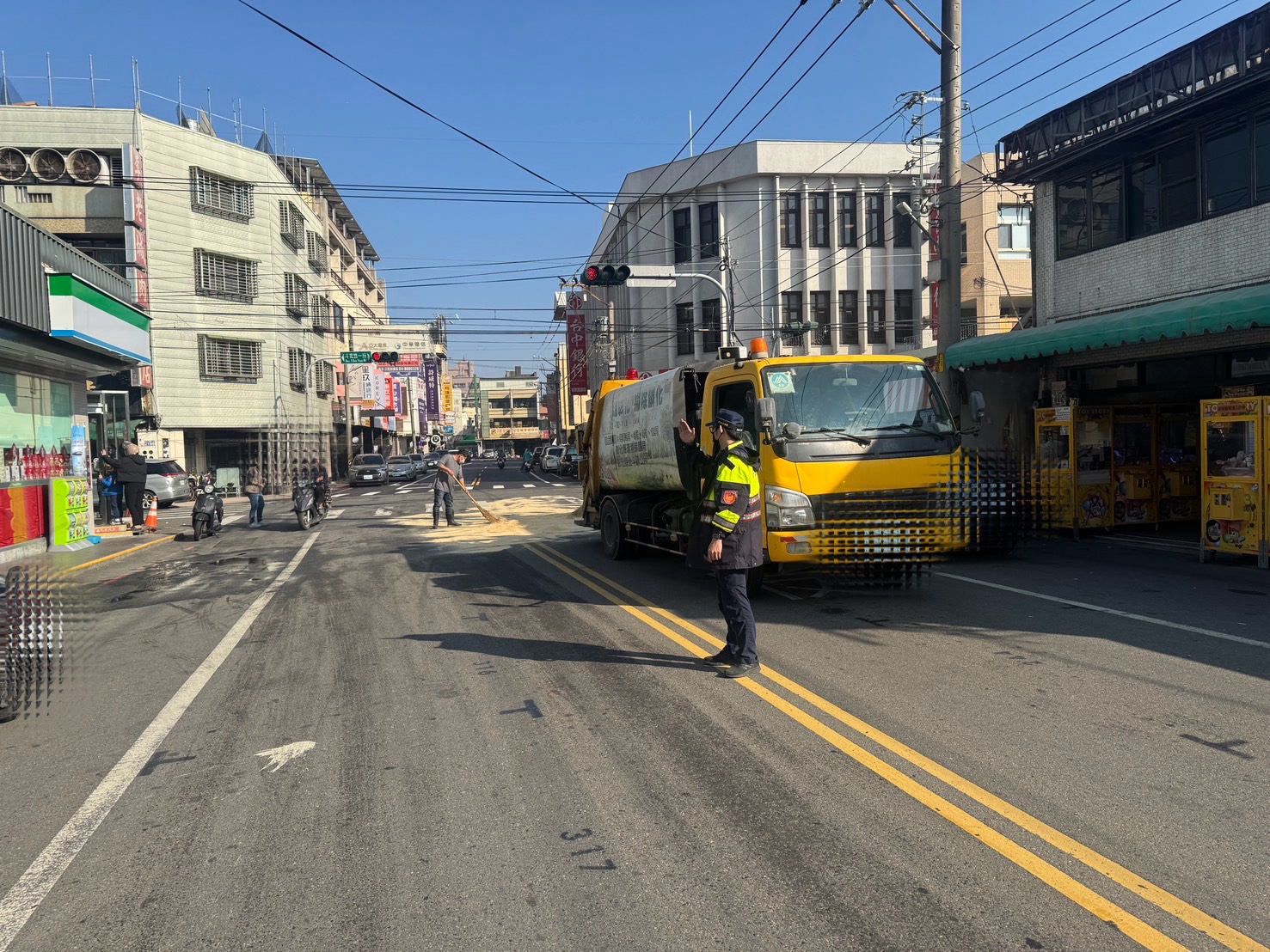 日前於北斗鎮斗苑路一段與三民街口發生車輛故障漏油情事,恐影響往來車輛行車安全。 北斗分局北斗派出所警員葉峻維接獲派案後,立即趕赴現場查處,經查係民眾駕駛自小客車,行經斗苑路一段與三民街口時,因車輛油管故障導致汽油滲漏,造成路面出現大量油漬,如未即時處理,恐導致車輛打滑發生交通事故, 警方到場時,該民眾已主動聯絡道路拖吊公司將故障車輛拖離現場,員警隨即於現場擺設交通錐實施警戒,並協助疏導往來車流,提醒用路人減速慢行、注意路況,以確保通行安全,其後由北斗鎮公所清潔隊到場協助清理路面油漬,待清除完畢後,道路交通秩序恢復正常。 北斗分局長楊志源表示,車輛平時應定期檢查保養,特別是油路系統及相關零件,避免因零件老化或故障導致漏油情形發生。若行駛途中發現車輛異常或滲漏情形,應立即停靠路邊安全處所,開啟警示燈並設置警示標誌,同時通報警方或相關單位協助處理,以降低事故風險;另呼籲,用路人行經路面異常(如油漬、散落物)時,應減速慢行並保持安全距離,共同維護道路交通安全,營造安全順暢的行車環境。