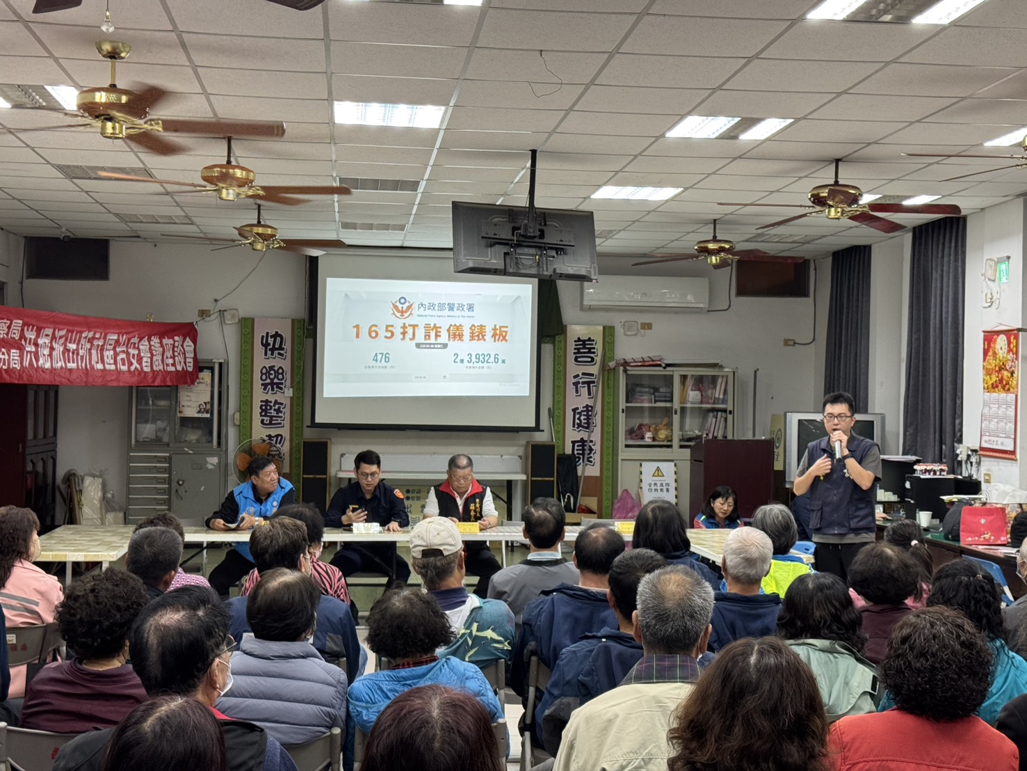 由於目前詐騙案件屢見不鮮,加上鹿港分局轄區人口數又以老年人居多,為降低住宅失竊率及民眾遭詐騙案,特編排時間逐一至轄區各鄉鎮召開社區治安會議以聽取轄區民眾之意見,提升轄區警政服務品質及打造最優質的社區警政服務。 鹿港警察分局洪堀派出所於25日19時許假彰化縣福興鄉秀厝社區活動中心舉辦社區治安座談會,以主動下鄉之方式了解鄉親民眾的需求,鹿港分局由分局各相關業務單位及當地派出所所長列席,讓詢問之民眾均能立即得到滿意之回復答案,另會中各組依轄區目前治安狀況、保護婦幼青少年、家庭暴力防治、反詐騙之要領(宣導165反詐騙諮詢專線)、如何推動社區治安,輔導成立社區巡守隊、避免鄉親被詐騙、推動家户訪問、社區督訪、交通安全(未戴安全帽、超載、開快車及酒後駕駛)、關懷獨居老人外等議題做討論,除針對居民最關心的轄區治安及交通工作加強宣導,本次更帶來最新的反詐利器—《打詐儀表板》宣導。 由於詐騙手法層出不窮,警政署為提升政府打擊詐欺犯罪的能見度同時強化民眾防詐意識,特別推出優化版的《打詐儀表板》,透過更直觀的數據及真實的案例解析,讓民眾體認到「原來詐騙離我們這麼近」;同時能快速掌握全國各縣市的詐欺趨勢,提供防範要點,來破解詐騙集團的詐術與手法。以降低竊案、詐欺案發生及維護轄區治安、交通安全,建構「平安、祥和、快樂」的社會氛圍。