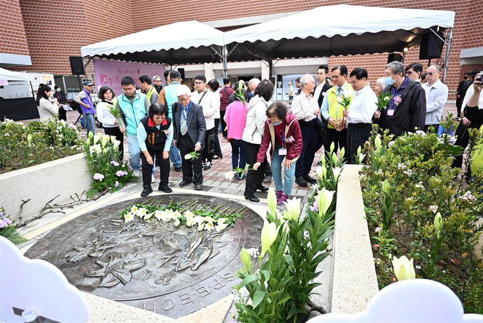 2026年彰化縣二二八和平紀念日活動,於今(28)日上午在彰化縣立圖書館前廣場舉行,以「和平共生 有愛同行」為主軸,彰化縣長王惠美、各級民代、牧師與受難者家屬出席。在平和溫馨的氛圍中,王縣長及與會來賓於二二八紀念碑前獻上和平百合,透過祈福儀式表達追思之意,象徵歷史傷痛逐漸轉為自由、包容與希望的力量。王縣長表示,在這個具有深刻歷史意義的日子裡,懷著沉重謙卑的心情,向所有在那段動盪歲月中失去生命與自由的人們,致上最深的敬意與哀思。 王縣長表示,二二八事件是臺灣歷史上一段不可遺忘的記憶。提醒著我們,和平與民主得來不易;也提醒我們,必須珍惜彼此的理解與包容。歷史或許帶來傷痛,但唯有正視歷史,才能走向真正的和解;也唯有彼此尊重,社會才能更加團結。今天的紀念日,不只是為了追憶過去,更要用愛與包容化解對立,用理性與對話取代衝突,讓下一代能夠生活在更加自由、民主與和平的土地上。 王縣長指出,記住歷史,不是為了延續仇恨,而是為了避免悲劇再次發生。透過不斷努力與對話,臺灣社會正逐步走向理解與和解,這份得來不易的民主成果,需要我們共同守護。未來將持續以尊重歷史、關懷人權的精神,推動社會的進步與團結,讓這塊土地成為充滿希望與溫暖的家園。謹以最誠摯的心,向所有二二八事件的受難者致上最深的追思與敬意,願逝者安息,願臺灣平安,願和平長存。 民政處表示,本次活動由社團法人彰化縣音樂河社會福利協會揭開序幕,演唱〈望春風〉及〈奇異恩典〉等曲目,以悠揚歌聲撫慰人心,讓音樂成為跨越世代的橋梁,將過往傷痛轉化為溫暖與前行的力量。隨後,由台灣基督長老教會和美教會陳榮祥牧師為受難者及家屬祝禱,象徵以誠摯的心面對歷史,期許未來以理解與包容拉近彼此距離,消弭歧見與對立,迎向更為和諧共融的社會。儀式中,縣長王惠美向二二八受難者家屬獻花致意,表達深切關懷與崇高敬意。 與會人員有立法委員謝衣鳯、黃秀芳、議員楊子賢、黃柏瑜、李成濟、莊陞漢、彰化市長林世賢、臺灣基督教長老教會和美教會牧師陳榮祥、各民意代表及地方仕紳等。