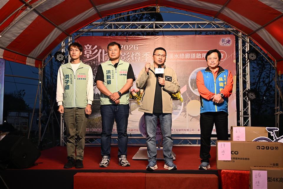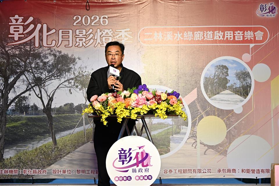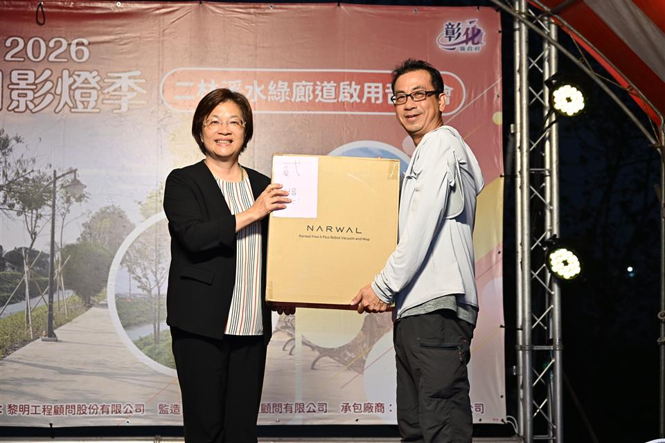 彰化縣政府推動「二林溪排水(忠孝橋至信義橋)周邊景觀改善工程」,已於日前完工,將傳統排水渠道改造為綠意盎然的休閒綠帶,並於今(1)日在二林溪畔舉辦水岸音樂會,彰化縣長王惠美出席,與鄉親互動同樂。配合生肖馬年,現場致贈「2026月影燈季」限量版Rody小提燈,民眾反應熱烈。王縣長表示,縣府挹注2,796萬元改善二林溪水岸廊道,感謝議長謝典霖及所有議員對預算的支持,共同打造優質水岸環境。 王縣長表示,二林溪緊鄰二林基督教醫院、洪醒夫文學紀念公園,過去岸邊經常雜草叢生、環境品質不佳。為提供民眾優質水岸環境,本工程改善忠孝橋至信義橋約795公尺,其中行人鋪面730公尺,沿岸種植洋紅風鈴木共170顆及灌木植栽、設置路燈38盞、休憩桌椅34張,營造蓊鬱林蔭廊道。期盼讓居民在岸邊休憩時,能更親近自然,享受舒適水岸風光。 王縣長指出,因應元宵節慶即將到來,今日特別安排「猜燈謎」活動,並邀請歌后于台煙帶來精彩演出。也準備豐富摸彩獎品,增添歡樂氣氛,讓大家欣賞美景之餘,也有機會帶走滿滿驚喜。 二林鎮長蔡詩傑表示,二林溪是二林的母親河,感謝王縣長縣府團隊對二林溪的用心規劃,進行示範段的河川整治。期望未來透過通盤改善,提升二林溪整體美化與治水效益,引領二林成為更宜居宜遊的地方。 立委謝衣鳯表示,感謝王縣長縣府團隊對二林的建設,整治二林溪並規畫優質水岸空間。讓二林不僅有文化藝術,還有豐富的綠帶地景,相信每個蒞臨二林觀光的遊客,都能感受到二林的魅力。 縣議員陳一惇代表致詞表示,還記得小時候常在二林溪畔玩耍,那時水面清澈見底,後來隨著城市發展逐漸變得髒亂。感謝王縣長的用心,引用東螺溪成功治水的經驗,重新賦予二林溪嶄新樣貌。 水利資源處表示,本次工程進行水岸景觀綠美化,同時改善步道舖面,配合增設夜間照明燈具、休憩座椅等設施,提升人行空間的舒適性與安全性,營造親民水域環境。縣府致力於提升各鄉鎮生活環境品質,未來縣府將持續推動環境優化計畫,讓彰化各處皆成為宜居宜遊的好地方。 與會貴賓有立委謝衣鳯、立委陳素月服務團隊、縣議員陳一惇、張國棟、洪騰明、洪子超、吳淑娟、二林鎮長蔡詩傑、彰化縣工商發展策進會副總幹事陳穎青、儒林書法學會第14屆理事長蔡照泉、黎明工程顧問公司董事陳禹志、縣府水資處代理處長黃俊峰、副處長陳炳森、各級民意代表及地方仕紳等。