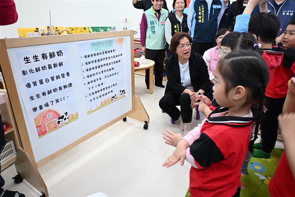 為保障學童營養攝取不中斷,彰化縣政府於114年自籌8,000萬元推動「生生有鮮乳 學童笑CC」政策,提供縣內國中小及附設幼兒園學生每週一瓶免費國產鮮乳,政策成效顯著,深受民眾支持。115年加碼自籌1億540萬元延續辦理「生生有鮮乳 學童笑CC」政策,並擴大至縣內私立中小學、私立幼兒園。彰化縣長王惠美於今(2)日前往大村鄉立幼兒園視察政策推動情形。 王縣長表示,「生生有鮮乳」是營養補給政策,展現縣府守護學童健康成長的責任與關懷。彰化是牛乳的重要產地,113年12月中央取消學童鮮奶補助計畫,但是縣府在議長謝典霖及所有議員對預算的支持下,114年自籌8,000多萬元預算,讓縣內國中小將近9萬多名學童,能夠持續喝到鮮奶。 王縣長指出,經過114年試辦,整體成效良好。今(115)年再編列1億540萬元經費,向下扎根,擴大照護縣內私立中小學、私立幼兒園學童營養需求。鮮奶可以攝取到鈣質、維生素及多元營養,讓孩子在成長過程中,不論智力發展、肌肉發育,都能得到最好照顧。如果孩子有乳糖不耐症,也會提供豆漿作為替代,讓每一位孩子都能獲得均衡營養。 農業處表示,「生生有鮮乳」政策不僅照顧學童健康,同時支持本地酪農產業發展,政策使用之乳源,優先採購來自彰化在地酪農生產的國產鮮乳。彰化為全台酪農重鎮,乳牛飼養量與生乳產能均居全國之冠,透過政策落實產地到餐桌,穩定農產銷售,同時也深化學童對本土農業的認識,為食農教育向下扎根。 「生生有鮮乳」是一項結合營養、教育與產業支持的綜合性政策,未來將持續透過跨局處合作,精進執行效能,讓彰化孩子喝得健康、成長安心,也讓在地酪農產業共榮發展,打造永續健康的「美好彰化 希望城市」。 陪同視察人員有縣議員曹嘉豪、劉惠娟、凃俊任議員服務處主任蕭字泰、大村鄉長賴志銘、大村鄉民代表會主席黃錫暉、副主席陳珮琳、農業處長郭至善等人。
