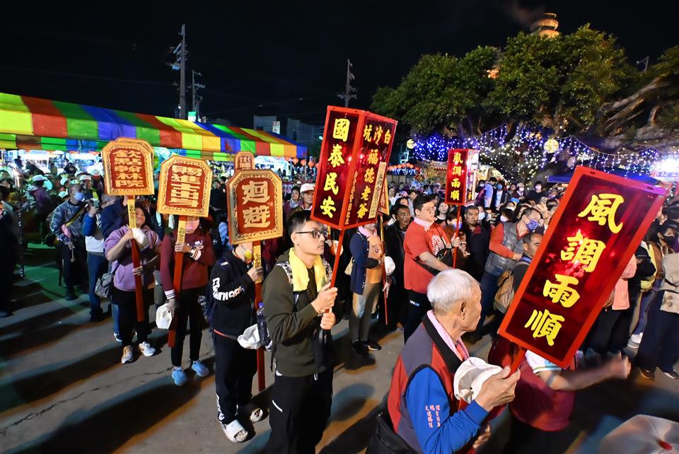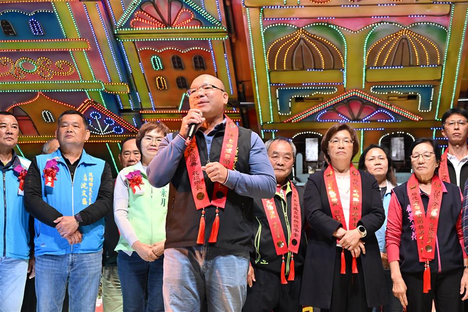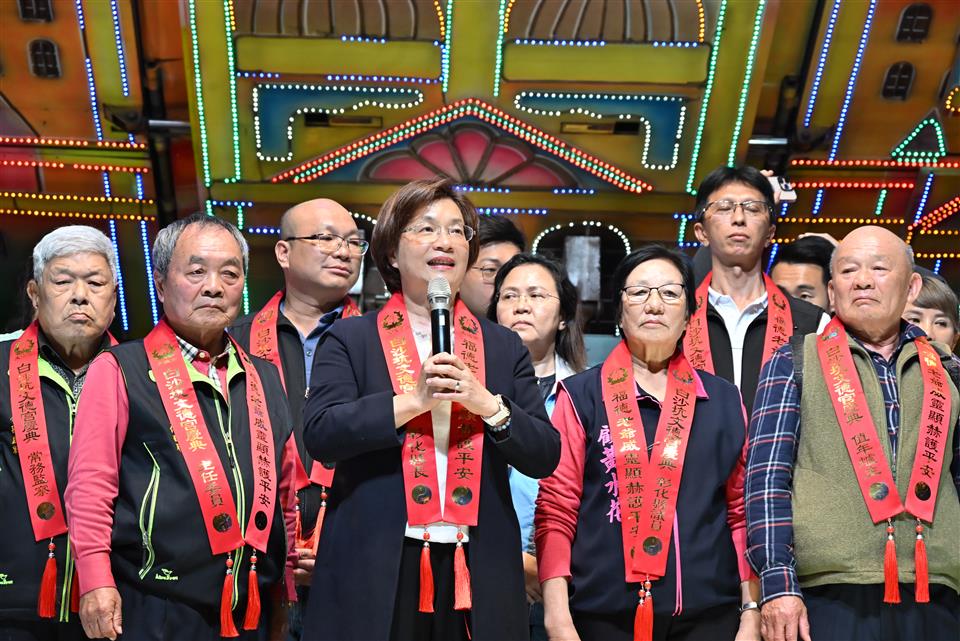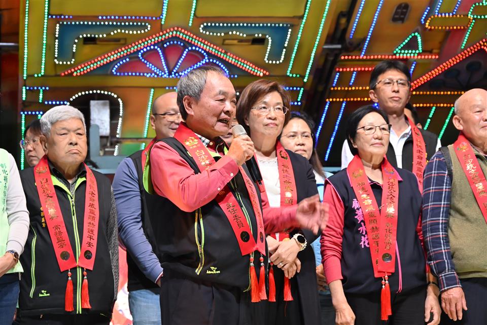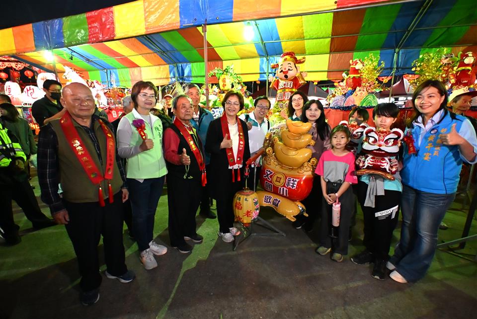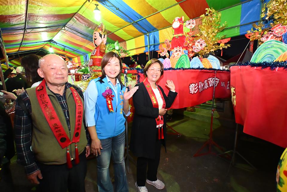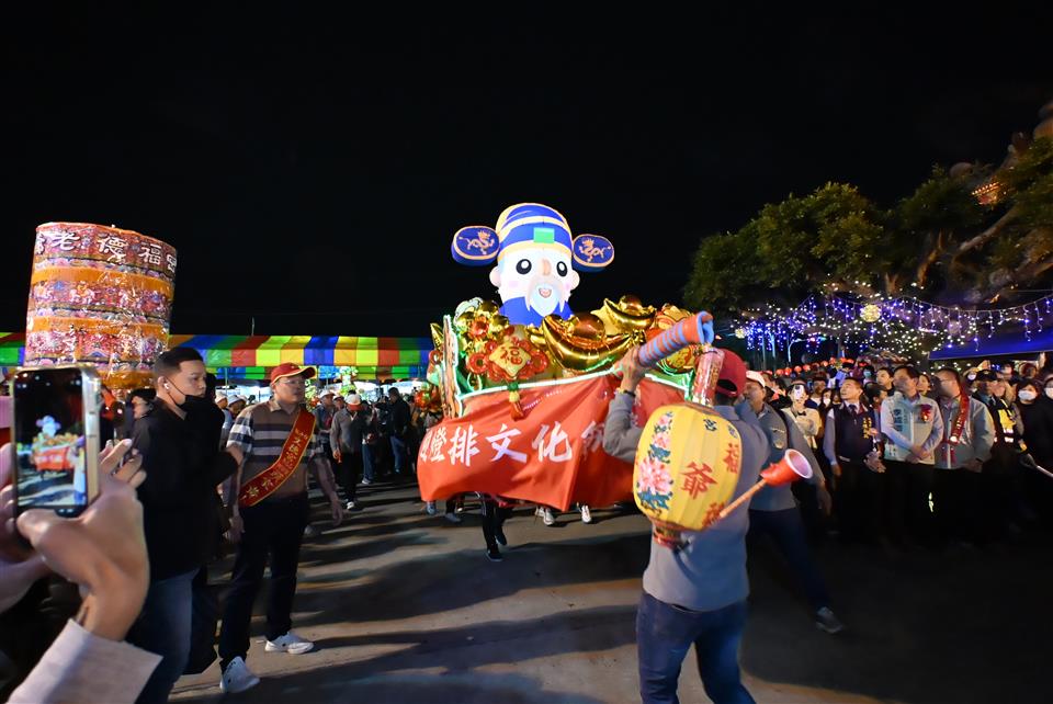 擁有近兩百年歷史的元宵節盛事-彰化花壇「白沙坑迎燈排」,今(115)年於國曆3月3日元宵節當晚在花壇鄉文德宮舉行「2026白沙坑迎燈排文化節」點燈儀式。由彰化縣長王惠美、花壇鄉長顧勝敏、文德宮主委李錫圭及多位民代共同祭拜福德正神,點亮象徵吉祥寓意的燈排,一同舉燈排向福德老爺行三敬禮,開啟迎燈排遶境祈福活動序幕。現場湧入大批鄉親與遊客,場面熱鬧非凡。 王縣長表示,文德宮供奉的福德老爺,是全國唯一頭戴官帽的土地公。每年參與迎燈排活動,都能深刻感受到文德宮主委帶領的團隊以及公所團隊的用心,活動一年比一年更精采盛大。白沙坑迎燈排源於清道光年間,相傳花壇文德村子弟曾維楨入翰林院為官,皇帝感念其孝心,特准其故鄉白沙坑於每年元宵節比照京城規制迎燈祈福,代代相傳至今已有198年歷史,並於2008年登錄為彰化縣無形文化資產。為讓文化向下扎根,每年學校都會帶領孩子一同製作代表學校特色的燈排,讓下一代在親身參與中認識傳統、體驗文化,延續珍貴的歷史資產。俗話說:「拜土地公,身體會健康;拜福德老爺,大家會很好額(有錢)。」祝福大家都能求得健康與財富。 花壇鄉長顧勝敏表示,白沙坑迎燈排一年比一年熱鬧,大家越拜越平安、越拜越好額(有錢)。適逢馬年,祝福大家馬到成功。 文德宮主委李錫圭表示,感謝王縣長縣府團隊對本次活動的大力支持,同時感謝所有工作人員的付出,讓活動順利進行。 議員顧黃水花代表致詞表示,非常開心今天能向福德老爺祝壽,在場聚集的民眾越來越多,代表興旺,福德老爺會保佑大家「腳健手健、身體勇健」。祝福大家身體健康、萬事如意,一年比一年更好。 文化局表示,白沙坑迎燈排是中部地區最具代表性的元宵節慶之一。地方遵循古禮,以文德宮為中心,連續三天由居民扛著手工製作的燈排,繞行白沙坑地區長沙村、白沙村、文德村的大街小巷,展現濃厚的地方信仰及凝聚力,更彰顯孝道為本的文化精神。除傳統迎燈排遶境與慶元宵晚會外,文化局也在文德宮內規劃《白沙坑迎燈排的奇幻旅程》臺語故事繪本展示專區,透過生動圖像與逗趣敘事,引導親子族群認識迎燈排的歷史由來,讓百年民俗向下扎根、世代傳承。 與會貴賓有立法委員陳素月、黃秀芳、議員顧黃水花、温芝樺、黃千宴、白玉如、李成濟、楊子賢、吳韋達、花壇鄉長顧勝敏、芬園鄉長林世明、文德宮主委李錫圭、常務監察人洪清勳、總幹事陳榮昌、花壇鄉民代表會主席沈文盛、花壇鄉農會理事長陳榮和、彰化縣文化局長張雀芬、各級民意代表與地方仕紳。