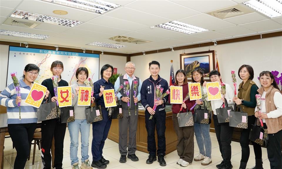 迎接專屬於女性的38婦女節到來,彰化縣警察局芳苑分局為感謝所有女性同仁在工作崗位上的辛勞與付出,分局長黃一航特別於婦女節前夕,偕同芳苑警友辦事處主任蔡俊仲,親自致贈精緻鮮花與知名品牌巧克力給每位女性警察及員工,藉此表達最誠摯的敬意與祝福。 隨著時代變遷,女性在警界的人數逐年增加,無論是在第一線的交通指揮、治安維護,或是處理細膩的婦幼保護、家暴防治等案件,女性同仁常以其特有的柔性力量、耐心與細心,完美化解各種挑戰,是警察團隊中不可或缺的穩定力量。 今年的慰勞禮品別具巧思,特別嚴選來自南投縣埔里小鎮的知名品牌「FEELING 18」巧克力。這份特別的禮物不僅代表著甜蜜與溫暖,其品牌名稱「18」更蘊含了滿滿的祝福,象徵著希望芳苑分局的每一位女性同仁,無論在工作或生活中,都能常保如18歲般的青春活力與熱情,永遠充滿美麗與自信。 分局長黃一航表示,警察工作日夜顛倒且充滿高壓,女性同仁往往還需要兼顧家庭與照顧子女,展現出無比的堅韌。透過這次婦女節的贈禮活動,除了營造溫馨的友善職場環境,更期盼大家在守護轄區治安與交通之餘,也要好好照顧自己的身心健康。芳苑分局將持續做女性同仁最堅強的後盾,祝賀所有女性同仁「婦女節快樂」。