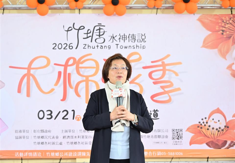 竹塘鄉公所於今(10)日上午在竹元家政教室辦理「2026竹塘鄉水神傳說木棉花季」記者會,彰化縣長王惠美、竹塘鄉長蔡碩任等人與會。今年活動精采絕倫,包括熱血的水田拉力賽及路跑、深受年輕人喜愛的和服體驗,以及小朋友最期待的YOYO家族雲朵姐姐帶動唱、氣墊樂園等。廣邀全國鄉親於3月21日,攜家帶眷來竹塘田頭堤防木棉花道漫步賞花。 王縣長表示,感謝蔡鄉長公所團隊的用心,在春暖花開之際舉辦木棉花季,行銷竹塘、行銷彰化。竹塘的木棉花道是以前農民為乘涼所種植,近幾年在公所努力行銷下,成為新的熱門賞花景點。現在正逢木棉花開的季節,歡迎全國鄉親好友蒞臨竹塘欣賞絕美的木棉花開。 竹塘鄉長蔡碩任表示,過去竹塘木棉花是秘境,現在已是全國小有名氣的花季活動。期盼讓全國民眾知道,竹塘有美麗的景色與優質農特產品。邀請全國好朋友,有空來竹塘鄉漫步,品嘗地方特產。另外,水田拉力賽是為讓民眾了解以前做田人割稻插秧的辛苦,本次水田拉力賽特別提高獎金,歡迎民眾踴躍參與。 竹塘鄉民代表會主席林淑女表示,活動內容豐富,有摸彩及市集活動。現場會有很多青農販售最新鮮的農特產品,邀請全國民眾一起共襄盛舉。 城觀處表示,每到3月,彰化就變得特別嫣紅、特別漂亮,竹塘木棉花道從私房景點,成為全台灣知名的賞花勝地。竹塘不僅有漂亮的木棉花,還有遠近馳名的「竹塘米」,近年來在竹塘鄉農會的推廣下,開發出紀念酒「竹塘醉飄䅨」,還推出米冰棒、米餐包、米乳酪蛋糕、米排餐等,將竹塘米時尚化、生活化、多化。 與會貴賓有議員吳淑娟、立委謝衣鳯服務團隊、議員陳一惇服務團隊、議員洪騰明服務團隊、竹塘鄉長蔡碩任、竹塘鄉民代表會主席林淑女、竹塘鄉民代表會副主席暨農會理事長蔡俊傑、各民意代表及地方仕紳等。