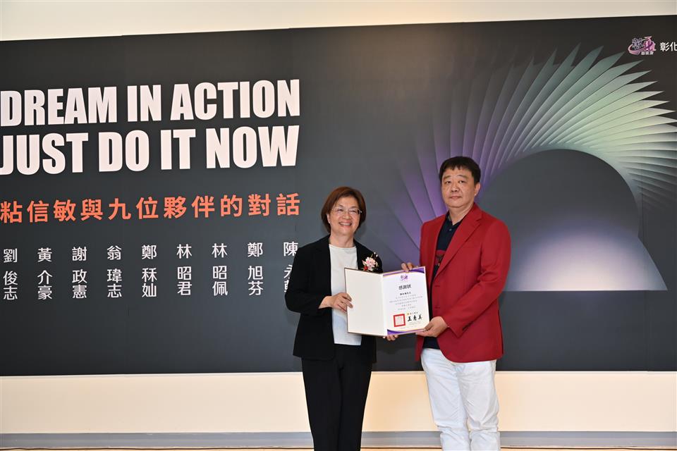 一場國際級的藝術交織在地深耕的創作靈魂—「DREAM IN ACTION JUST DO IT NOW 粘信敏與九位夥伴的對話」,即日起至4月4日於彰化縣立美術館展出,今(15)日下午舉行開幕式,由彰化縣長王惠美主持。王縣長表示,本次展覽由粘信敏老師攜手9位藝術菁英:劉俊志、黃介豪、謝政憲、翁瑋志、鄭秝奾、林昭君、林昭佩、鄭旭芬、陳永軒,展現多年創作成果,創作媒材包含傳統油畫、水彩,到現代感的數位藝術及陶瓷立體創作,匯集百件精選之作,歡迎大家蒞臨感受當代藝術的豐沛動能。 王縣長表示,粘老師是彰化藝術界的驕傲,在國際舞台屢放異彩,憑藉作品《湖畔清晨》奪得「世界藝術家挑戰賽」不分媒材類大獎,寫下連續3屆獲獎的亞洲藝術家紀錄,讓世界看見台灣。除了靜態觀展,也歡迎大家參加3月21日(六)的藝術座談會及3月22日(日)的「黃金萬年草」多肉花藝體驗。透過手作與對話,讓藝術真正走進我們的生活。 粘信敏老師表示,繪畫遇見的酸甜苦辣,如同理解事物的過程,會接觸到不同學問與細節。快樂的心態是持續創作的動力,得獎是一種肯定,創作過程本身更是一種享受。 策展人劉俊志、黃介豪代表致詞表示,夢想與現實之間,僅隔著一條名為「行動」的河流,追逐夢想的路徑就是行動,每位創作者都是勇於追夢的人。粘老師用創作實力與經驗證明一件事:藝術不是天空中的神話,而是長期實踐的結果。 文化局表示,作為本次展覽的領航者–粘信敏老師,其藝術造詣深獲全球指標性媒體與機構肯定,2021與2026年兩度榮獲「美國國際藝術家雜誌世界藝術獎」首獎;2024 年《飲水思源》於同項賽事獲得第2名殊榮,創作展現出極具韌性的藝術生命力。本次展覽粘老師以「精神領袖」的角色,引導學生在紮實造詣上探索自我,讓創作者都能在各領域中,提煉出純粹的人文精神。 本次展出的9位傑出藝術家皆於專精領域綻放異彩,彰化縣接力展第114棒謝政憲與鄭秝奾深耕水彩與不透明水彩(Gouache)以細膩筆觸捕捉城市脈動與花卉靈魂,在多項世界級藝術挑戰賽中脫穎而出;翁瑋志與鄭旭芬,憑藉精湛洗鍊的水性顏料技法,雙雙榮獲日本 IFA 國際美展文化賞之殊榮;黃介豪以深厚的油畫功力,將森林與山脈的自然靈氣轉化為永恆視覺,展現在風景藝術的卓越造詣。 林昭君與林昭佩巧妙結合水粉、黏土及陶瓷,在 Light Space & Time 等國際線上畫廊的立體類賽事中蟬聯冠亞軍,成功超越平面藝術的框架。劉俊志與陳永軒則以數位影像輸出為語彙,在黑白幾何的洗鍊與抽象美學的探索中,開創數位時代的藝術視野。這場跨領域的藝術對話,展現10位藝術家豐沛的創作動能,勾勒出當代藝術萬象的生命張力。 與會貴賓有彰化縣文化局局長張雀芬、縣府教育處長蔡金田、中部水彩畫會會長暨彰化縣美術學會榮譽理事長林俊寅、台灣I F A美術協會副會長蔡錫和、心月藝術中心館長卓麗秋及謝義德醫師賢伉儷、彰化縣美術家接力展洪文黎老師、彰化縣美術家接力展謝金德老師、彰化縣美術家接力展詹益鋒老師、彰化縣美術家接力展常連芳老師、頂舜文化事業有限公司總經理雷文通、忠孝國小校長陳昱仁、花壇國小校長郭雪梅、各級民意代表及地方仕紳等。 詳細活動內容請上彰化縣文化局活動網頁查詢:https://www.bocach.gov.tw/News_Content.aspx?n=92&s=53335