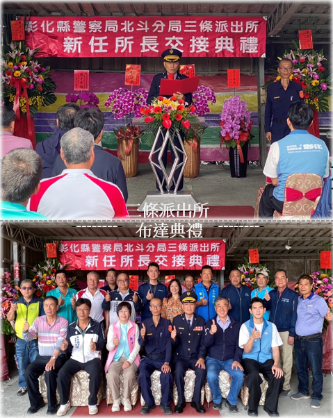 彰化縣警察局北斗分局三條派出所於(19)日舉行新任所長布達典禮,由分局長主持,現場邀請多位地方仕紳觀禮,儀式莊重、氣氛熱烈。新任所長由巡佐莊俊宜接任,分局長期許莊所長之基層資歷與在地情感,為三條地區治安注入新動能。 分局長在布達典禮中強調,派出所是警政服務的最前線,莊所長具備「老三條人」的在地優勢,定能快速無縫接軌。分局長同時期許莊所長除了落實治安、交通之維護,更要秉持「視民如親」的精神,為鄉里服務,並請地方仕紳持續支持警政工作。 儀式最後在溫馨的氣氛中圓滿結束。地方仕紳紛紛表示,由熟悉地方的老將回歸接掌派出所,令鄉親倍感安心,也期待三條派出所在莊所長的帶領下,開創警民合作、安居樂業的新氣象。