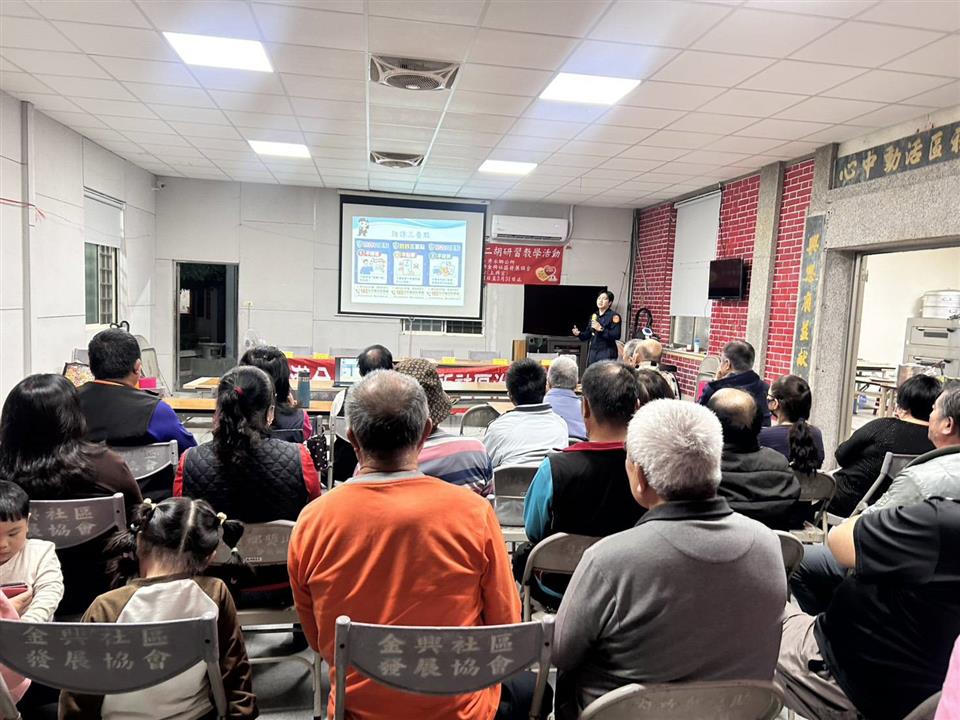 為加強轄內村民與員警橫向聯繫,與當地居民直接溝通交流,聽取民眾對治安寶貴意見,共同解決社區的治安問題。鹿港分局於115年3月18日19時在秀水郷金興村社區活動中心辦理社區治安會議,本次會議有縣政府顧問鄭倫杰、縣議員凃淑媚、藍駿宇、施佩好、立委陳秀寳助理簡銘宸、秀水鄉長候選人葉國雄、縣議員楊竣程助理趙磊、郭軒峰、秀水鄉民代表會主席主任吳芳明等人及社區民眾近百人到場共襄盛舉,並同時進行人口販運、識詐及交通安全宣講,宣導民眾遇有疑似人口販運或詐騙案件務必保持冷静,盡可能記下相關細節,撥打110、165專線請求協助,以獲得警方即時保護。 現場也特別規劃「有獎徵答」活動,並準備精美小禮物,鼓勵村民踴躍參與,加深對治安議題的認識,讓宣導更具互動性與趣味性。 鹿港分局副分局長許平海表示,詐騙事件頻傳,警政署為讓民眾可以更清晰認識詐騙的危害,特以AI科技設立「165打詐儀錶板」網站,定期發布詐騙數據,揭示最新詐騙手法前五名,並連結警政官網、臉書,供民眾瀏覽,提醒民眾勿陷入詐騙陷阱,同時也鼓勵鄉親將相關要點轉知親朋好友、左鄰右舍,讓社區一起努力,共同營造治安、交通安全友善環境。