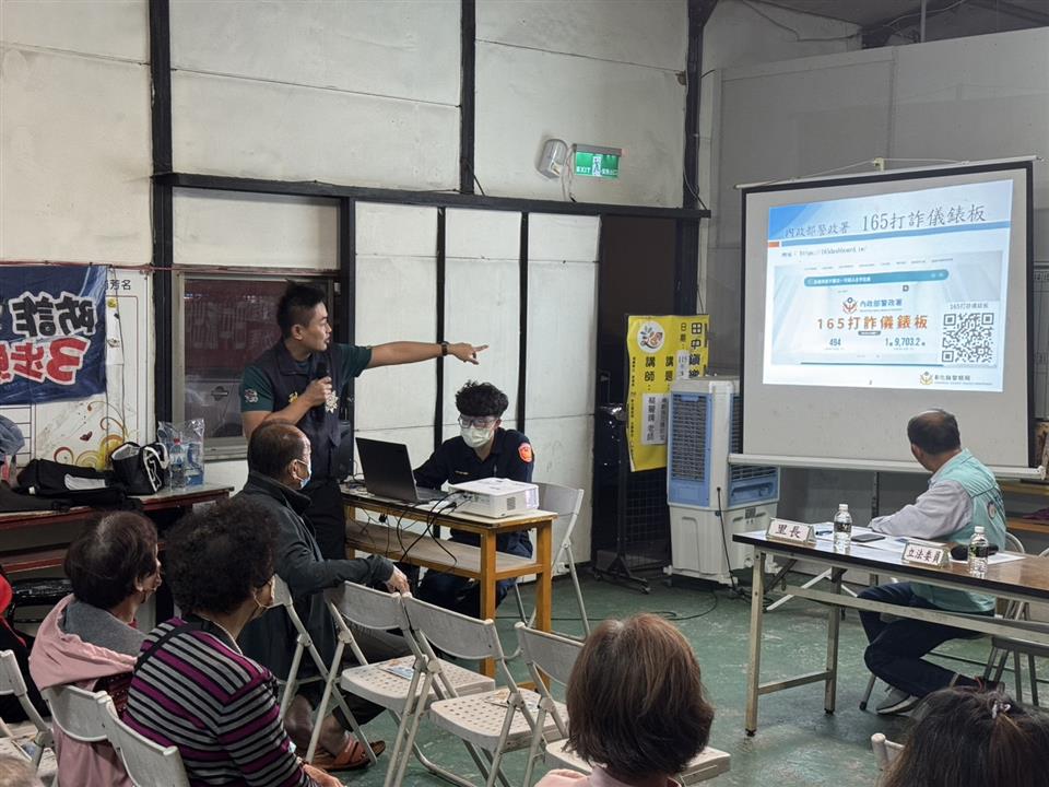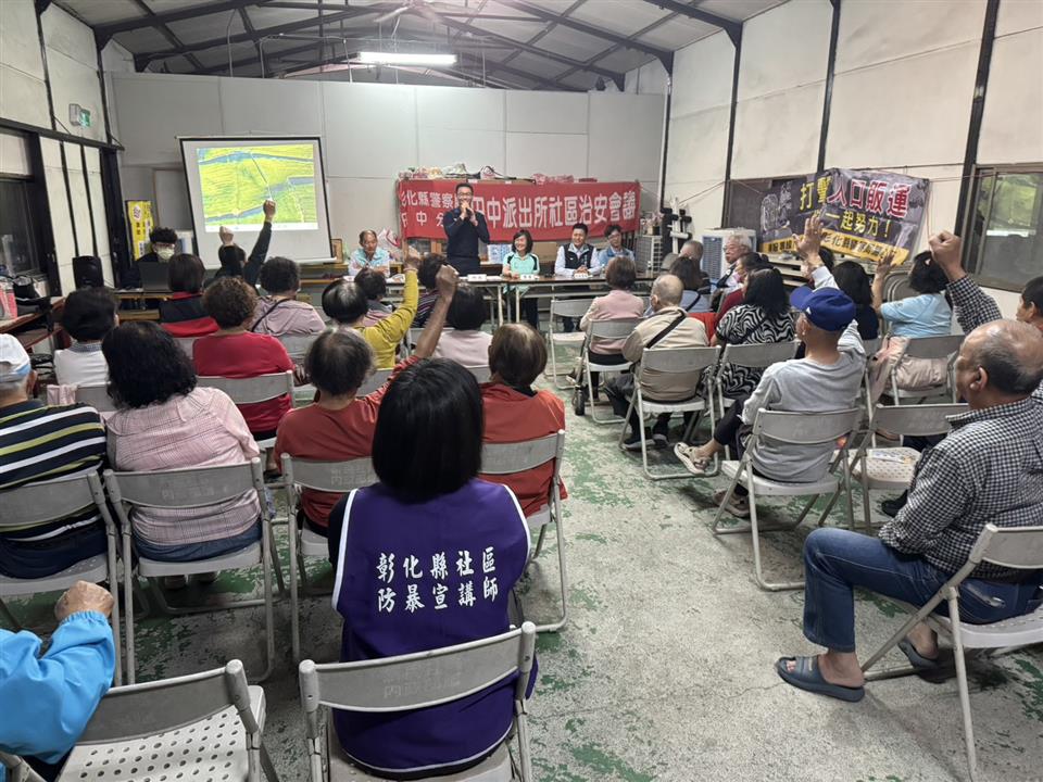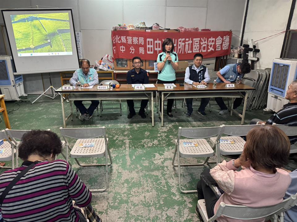 彰化縣警察局田中分局田中派出所於日前在彰化縣田中鎮新民里社區舉辦「社區治安會議」,本會議除社區民眾主動、自發性參與外,並邀集轄內社區組織、地方民意代表及意見領袖等,針對治安、交通及救災防災等議題召開,聽取民眾對治安建言,加強防範犯罪宣導與政策推動。 本次會議由田中分局田中派出所所長許翰綸主持,並由分局偵查隊、第三組、第五組、田中消防分隊及社會處等單位到場宣導政令,報告治安現況、打詐儀錶板、詐騙案例、人口販運、交通安全及防災救災等知識技能,以落實「治安社區化」效能。除有警察局防治科股長陳樹添、警務員鄭閔育、本分局副分局長顏志峰及第三組組長蕭豐碧出席外,會中參加貴賓尚有議員蕭妤亘、議員詹婉惠、立法委員陳素月助理黃彩惠、縣府秘書蕭岳倫、鎮長蕭淑芬、里長王境銘、防暴宣講師陳秀雅等地方仕紳全程參與,參與民眾約50人,氣氛熱絡,會議進行順利。