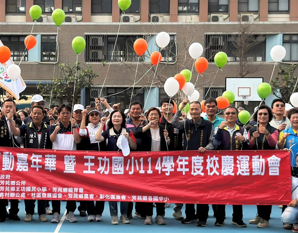 芳苑鄉睽違多年再次舉辦鄉運,結合王功國小106週年校慶,今(28)日上午在王功國小辦理115年度運動嘉年華暨校慶運動會,彰化縣長王惠美、芳苑鄉長林保玲等人與會。為參加活動的社區民眾、芳苑國中小師生加油打氣,同時感謝議長謝典霖及所有議員對地方建設及教育經費的支持,成就今天豐碩的成果。 運動嘉年華不僅是一場充滿活力的運動盛會,更是讓鄉親齊聚一堂、凝聚向心力的重要時刻。透過精彩的運動賽事與活動,讓社區居民彼此交流、互相打氣,不僅展現健康活力,也拉近彼此距離。活動中的拔河比賽更是象徵團結合作的精神,大家齊心協力,在加油聲中展現出社區凝聚力。現場氣球飛揚、笑聲不斷,洋溢著歡樂熱鬧的氛圍,讓社區之間建立深厚情誼,展現出芳苑鄉「社區團結」的精神。 此外,芳苑鄉的孩子在運動表現相當亮眼,王功國小在115年中小學聯運獲得1金1銅,芳苑國中競技舞龍隊參加「114學年度全國中華盃舞龍舞獅錦標賽」國中組賽事獲得4金。這些成果的背後,要感謝校長和師長們的辛勤付出、家長會及在地宮廟團體的支持,引領孩子多元發展。 教育處表示,根據交通部觀光署統計,芳苑鄉王功漁港於2025年遊客到訪人數名列彰化縣熱門旅遊景點第3名,顯示地方觀光持續進步。芳苑不僅以新鮮海產聞名,更擁有豐富的潮間帶生態資源,遊客可近距離觀察招潮蟹、彈塗魚及大片紅樹林景觀,是兼具自然教育與生態體驗的旅遊地點,歡迎民眾安排生態之旅到芳苑漫步,親身感受當地獨特的自然魅力。 與會貴賓有縣議員吳淑娟、洪子超、洪騰明、芳苑鄉長林保玲、芳苑鄉民代表會主席陳禮模、副主席林清在、芳苑鄉農會總幹事洪翊桓、彰化區漁會總幹事陳威谷、芳苑鄉體育會理事長黃榮和、福海宮主委林義璿、彰化縣工策會總幹事洪榮章、參議柯呈坊、教育處長蔡金田、王功國小校長洪文章、家長會長陳宥程、各社區發展協會理事長、各學校校長、各級民代及地方仕紳等人。