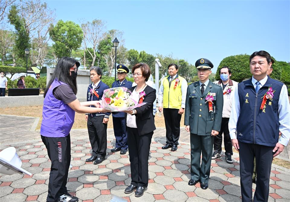 彰化縣長王惠美於今(29)日上午接連前往彰化忠烈祠、國軍彰化忠靈塔、彰化軍人忠靈祠參與春祭國殤大典,分別由王縣長及陸軍指揮官十軍團邵中將擔任主祭,各界代表陪祭、與祭。追思緬懷為國捐軀、因公殉難的官兵、烈士英靈,感念其對社會及國家的貢獻,祭典場面莊嚴隆重、平和肅穆,表彰忠勇節義精神。 王縣長表示,今天舉辦彰化縣各界春祭國殤祭典藉以感懷先賢先烈對國家社會的貢獻與付出,才有現在安和樂利的家園。自由得來不易,希望民眾都能好好珍惜。「時代考驗青年,青年創造時代」。希望鄉親攜手努力,引領台灣這塊土地更好更進步。 王縣長於彰化市忠烈祠舉行的115年「彰化縣各界春祭國殤大典」擔任主祭,且率同烈士遺族、相關機關團體首長及各界代表等陪祭、與祭。向國軍陣亡將士及烈士靈位行上香、獻花、獻果及恭讀祭文等儀式,並逐一向烈士遺族致意慰問。隨後前往國軍彰化忠靈塔及彰化軍人忠靈祠,忠靈塔由陸軍指揮官擔任主祭。 民政處表示,彰化縣政府每年舉行春祭國殤祭典,盼藉由典禮喚起社會大眾對忠烈祠象徵之忠烈精神有更深刻的理解。另外,彰化軍人忠靈祠全年除農曆年除夕至大年初五休園外,每日均開放民眾進行祭祀活動,民眾可分散時間前往。不克前往參與祭拜的遺族,可利用彰化軍人忠靈祠線上祭拜系統,表達追思緬懷之意。相關訊息請上網軍人公墓-彰化軍人忠靈祠查詢,有需服務之處,歡迎電洽彰化軍人忠靈祠04-7242545,或縣府服務專線04-7531757。 陪祭人員有彰化縣議會主任陳廣武、彰化縣消防局長施順仁、民政處副處長陳俊南、彰化縣後備指揮部指揮官梅上校、彰化市公所主任秘書許晉嘉、彰化憲兵隊組長黃英傑、救國團彰化縣團務委員會主任委員施鳳銘、大葉大學組長薛贈福、建國科技大學副學務長陳啟能、各民意代表及地方仕紳等。