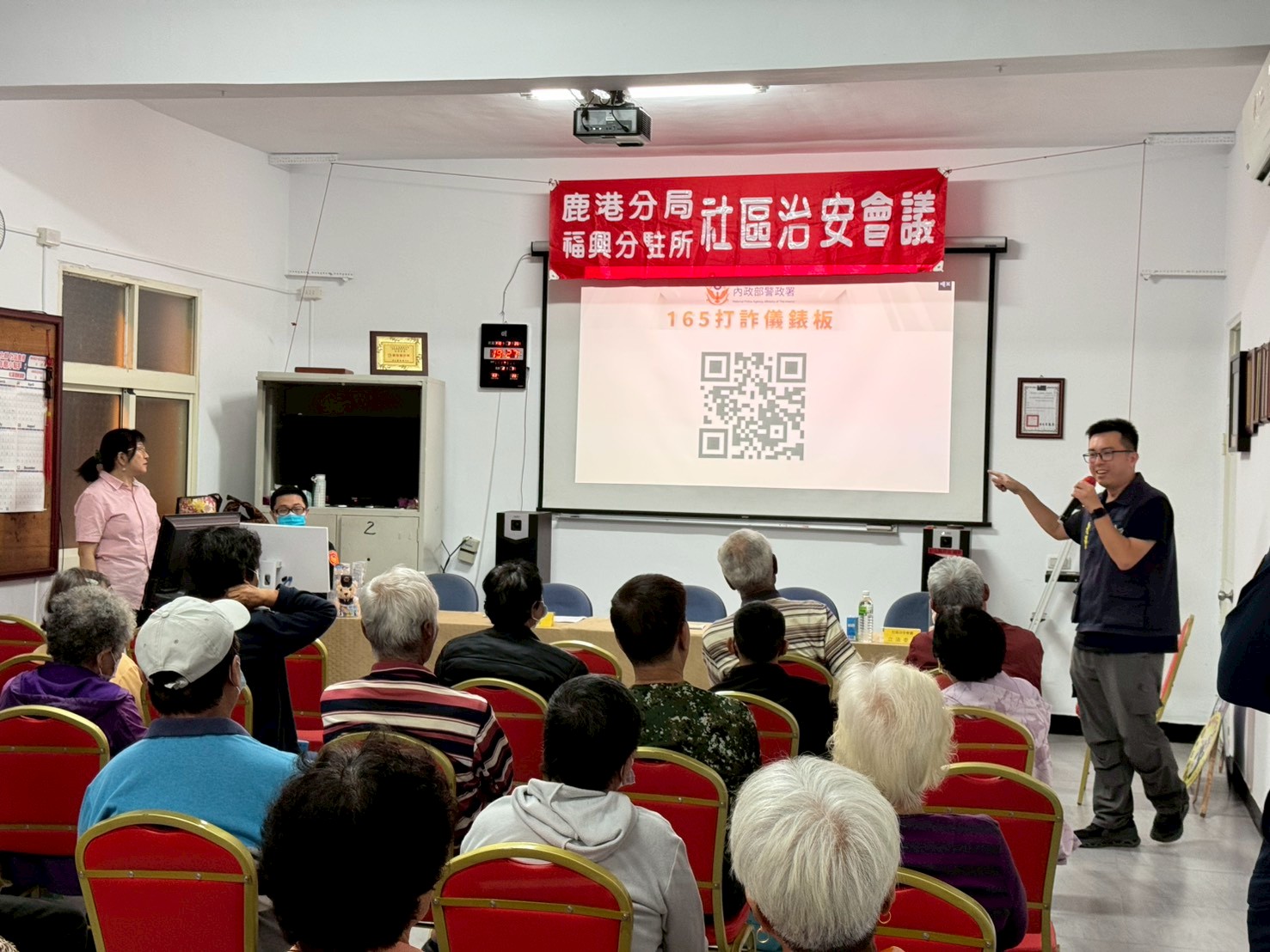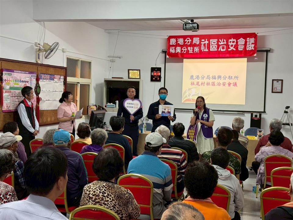 為加強轄內村民與員警橫向聯繫,與當地居民直接溝通交流,聽取民眾對治安寶貴意見,共同解決社區的治安問題。鹿港分局於115年3月25日19時在福興鄉社尾社區活動中心辦理社區治安會議,本次會議有縣政府顧問王信筌、縣議員施佩妤、立委陳秀寶助理梁肯豐、縣議員楊竣程助理趙磊、村長陳河傳等人及社區民眾近百人到場共襄盛舉,並同時進行人口販運、識詐及交通安全宣講,宣導民眾遇有疑似人口販運或詐騙案件務必保持冷靜,盡可能記下相關細節,撥打110、165專線請求協助,以獲得警方即時保護。 現場也特別規劃「有獎徵答」活動,並準備精美小禮物,鼓勵村民踴躍參與,加深對治安議題的認識,讓宣導更具互動性與趣味性。 鹿港分局分局長戴志龍表示,詐騙事件頻傳,警政署為讓民眾可以更清晰認識詐騙的危害,特以AI科技設立「165打詐儀錶板」網站,定期發布詐騙數據,揭示最新詐騙手法前五名,並連結警政官網、臉書,供民眾瀏覽,提醒民眾勿陷入詐騙陷阱,同時也鼓勵鄉親將相關要點轉知親朋好友、左鄰右舍,讓社區一起努力,共同營造治安、交通安全友善環境。