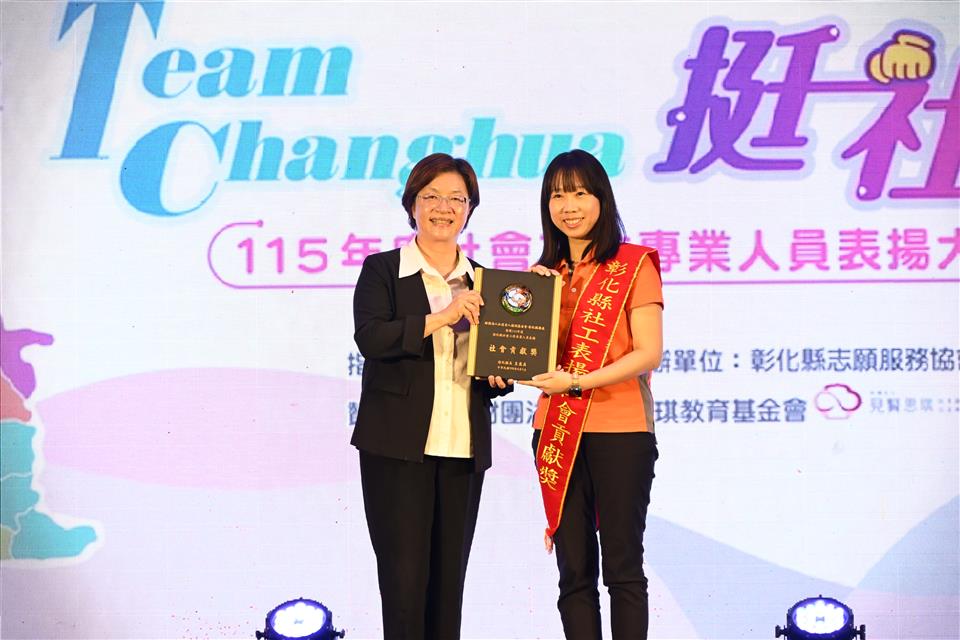 響應4月2日全國社工日,彰化縣政府以「Team Changhua,挺社工!」為主題,於4月1日晚間在花壇鄉全國麗園大飯店舉辦「115年度彰化縣社會工作專業人員表揚大會」。縣長王惠美親自頒獎表揚118位績優社工、103個社政人員及2間社福機構團體,向長期在醫療、社區、兒少、身心障礙、老人、婦女及家庭等領域付出、守護弱勢與家庭的社會工作人員表達最深的敬意與感謝,肯定對社會的貢獻與努力。 王縣長表示,許多弱勢朋友在第一時間遇到緊急狀況,都是社工夥伴提供最專業溫暖的服務,因為社工夥伴的守護,讓許多家庭走出陰影、看見希望。恭喜接受表揚的優秀夥伴,長期陪伴許多家庭走過困境。也恭喜「彰化縣伸港鄉溪底社區發展協會」及「財團法人弘道老人福利基金會彰化服務處」榮獲「社會貢獻獎」,兩個團體長期投入社會服務,陪伴弱勢家庭度過困境。縣府除肯定社會工作人員平日的辛勞與付出,也期盼社會大眾能更加理解社會工作專業,為社會帶來更多溫暖。 王縣長指出,縣府重視社工人員的工作環境及權益,不斷提升社工人員的待遇福利,除提高薪資之外,也積極地辦理專業訓練跟實務課程,協助社工夥伴能更得心應手。為保障社工外勤服務的人身安全,也準備安全警報器,建立完善權利通報救濟及申訴機制。並提供紓壓課程、心理諮商,希望社工夥伴照顧別人,也要照顧自己。縣府持續推動「全民雞婆心運動」,結合縣府、各公所、村里長,以及民間團體跟社區力量,建立更完善的社會安全網。 社會處表示,本次表揚大會共頒發6類獎項,其中個人獎項包括:「明日之星獎」21位、「火力十足獎」31位、「薪火相傳獎」26位、「馬拉松獎」24位及「珍愛永續獎」16位,合計共有118位來自彰化縣各公私立社福機構的優秀與資深社工獲得肯定。同時表彰來自各鄉鎮市公所的103位社政人員。感謝公所社政同仁長期推動各項社會福利服務及防災工作,特別於社工日系列活動中一併頒發「115年度績優社會行政人員」獎項,肯定公所夥伴長期以來對社福工作的協助。 社會處指出,為感謝縣內社工辛勞付出,縣府特別準備驚喜,將於社工日當天透過簡訊方式提供各領域社工午茶券,向社工夥伴表達感謝。今年社工日系列活動內容包含社工表揚大會、社工家庭日、心理諮商服務及貼心好禮等,期望讓平日忙碌於第一線服務的社工人員,在工作之餘也能放鬆身心、紓解壓力並持續學習,感受社會各界的關懷與祝福。 與會貴賓有立委謝衣鳯、黃秀芳、議員莊陞漢、彰化縣議員李成濟服務團隊、社會處長王蘭心、副處長涂敏群、彰化縣社工師公會常務理事許哲榮、社團法人彰化縣志願服務協會理事長賴協助、財團法人老五老基金會執行長游麗裡、財團法人台灣兒童暨家庭扶助基金會彰化分事務所主任王震光、彰化家扶扶幼委員會主委李世湧、財團法人基督教瑪喜樂社會福利基金會院長林玉嫦、財團法人彰化縣私立慈恩老人養護中心主任賴亭文、財團法人弘道老人福利基金會彰化服務處長周雨潔、彰化縣伸港鄉溪底社區發展協會理事長柯怡傑、各民意代表及地方仕紳等。