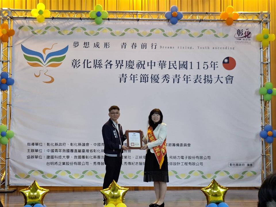 為慶祝115年青年節,救國團彰化縣團委會於3月27日在建國科技大學舉辦「115年彰化縣社會優秀青年表揚大會」,表揚在各領域表現卓越並積極投入社會服務的優秀青年。北斗地政事務所課員陳采均,憑藉在地政業務上的傑出表現,榮獲本年度彰化縣社會優秀青年殊榮。 陳采均課員自106年任職於北斗地政事務所,先後於登記課與地價課歷練。在登記課期間,憑藉扎實的初審經驗與深厚的法令素養,積極為民眾排憂解難;調任地價課後,主辦北斗鎮地價及財產管理業務,始終克盡職責。面對洽公民眾,她秉持耐心與細心,以專業且親切的形象提供優質便民服務,深獲公眾肯定,亦成為同仁學習典範。 北斗地政事務所陳春木主任表示,陳采均課員多年來在登記審查、地價及財產管理等業務上表現優異,工作態度認真負責,為人謙和,與同仁互動良好且樂於助人,此次獲選社會優秀青年,實至名歸。 業務單位:彰化縣北斗地政事務所 聯 絡 人:陳先生 電 話:04-8882034轉305
