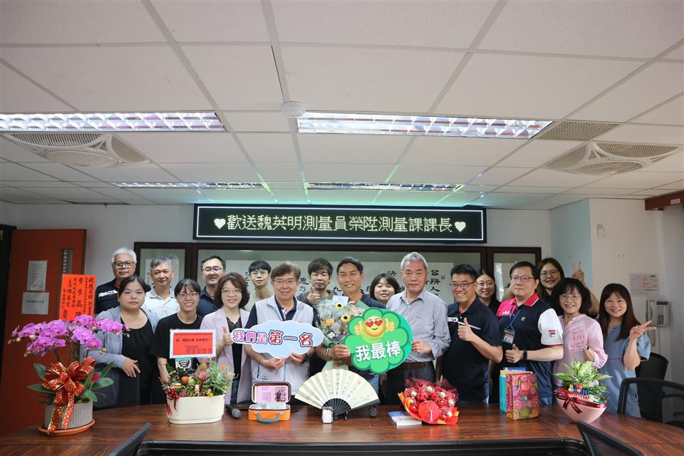 彰化地政事務所測量員魏英明先生於3月30日榮陞彰化縣溪湖地政事務所第二課課長,彰化所同仁們懷著不捨的心情歡送,由衷祝福他未來一切順心如意,鵬程萬里。 魏課長擁有土木專業學歷,歷任南投縣埔里地政事務所、彰化縣二林地政事務所測量員以及彰化地政事務所測量員,嫻熟一般複丈、地籍圖重測與三圖作業等業務,實為不可多得之人才;尤其在測量技術創新方面,更是兢兢業業提出許多實務優異發想,不僅如此,其創新更榮獲114年政府服務獎,對地政測量業務貢獻良多,此次榮陞溪湖地政事務所第二課課長可謂實至名歸,深獲彰化地政同仁肯定。 彰化地政事務所陳易宏主任表示,魏英明課長擔任測量員期間,除了盡心完成工作任務外,也積極推動各項測量創新業務,展現了認真的工作態度與專業能力,非常感謝他的付出與貢獻;期許他在新職位上繼續發揮專業所長、突破自我、更上一層樓,貢獻所學推動本縣地政業務、造福縣民。 業務單位:彰化縣彰化地政事務所第二課 聯 絡 人:蔡先生 電 話:7265924#202