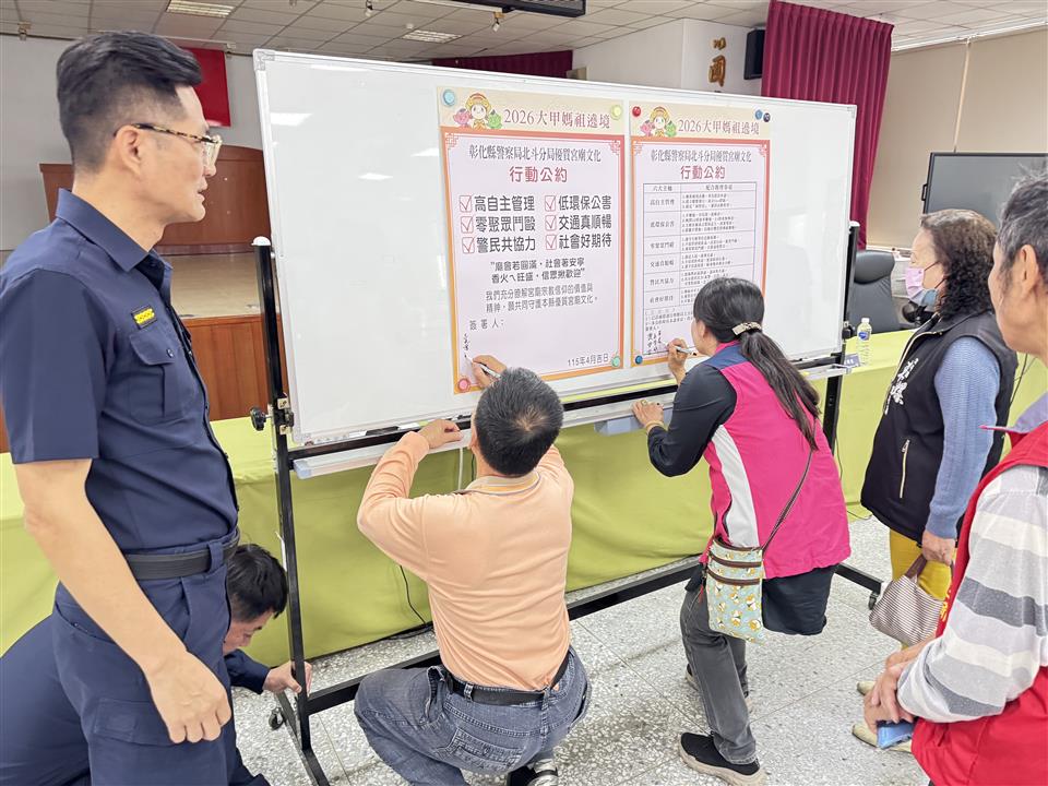 大甲媽祖遶境進香活動訂於115年4月17日(星期五)至26日(星期日)舉行,預計19日上午進入北斗分局轄區,途經田尾鄉、北斗鎮、溪州鄉後進入雲林縣;為維護遶境進香活動期間的安全及交通秩序,北斗警分局特於4月9日9時30分召開宮廟遶境協調會,由分局長楊志源親自主持,邀請轄內各接駕團體負責人與會討論,並共同簽署「優質宮廟文化-行動公約」,防制有心人士接轎時衍生打架鬥毆情事發生。 有鑑於往年遶境期間,偶有民眾過度激情發生爭搶神轎情事,為避免衍生衝突或踩踏事件發生,特別邀集北斗分局轄內33個宮廟及接駕團體,協調交接轎地點,另希藉由「高自主管理」、「低環保公害」、「零聚眾鬥毆」、「交通真順暢」、「警民共協力」、「社會好期待」等6項高度自律宣言,共同守護優質宮廟文化。會後也請宮廟負責人簽立行動公約,均表示願意配合遵守前述「高自主管理」等6大主軸宣言,成為優質的在地宮廟。 北斗警分局長楊志源嚴正聲明,北斗分局已做好萬全準備,對於滋事者將以優勢警力與強制力進行逮捕,捍衛治安秩序的決心堅定,對於挑戰者將繩之以法,絕不寬貸,並呼籲媽祖遶境期間少喝酒,少燃放鞭炮、嚴禁鬥毆,希冀創造優質宮廟遶境文化。