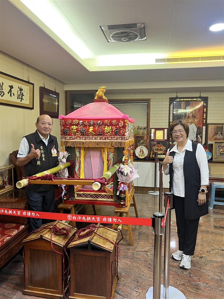 2026白沙屯拱天宮媽祖徒步進香活動,於4月12日深夜從苗栗起駕,前往雲林北港朝天宮進香,今年報名人數再創歷年新高,盛況空前。起駕當晚,彰化縣長王惠美特地前往苗栗拱天宮參拜,祈求國泰民安、風調雨順、闔家平安、萬事如意,希望媽祖護佑台灣、護佑彰化。 4月14日早上,白沙屯媽祖鑾轎沿台1線進入彰化市,縣長王惠美因公出差,由副縣長周傑代表王縣長前往大肚橋頭接駕,獻花祈福,迎接白沙屯媽祖來到彰化。下午,粉紅鑾駕沿中山路行經彰化縣政府前,副縣長周傑再度率領縣府團隊虔誠參拜,祈求媽祖護佑地方平安順遂。