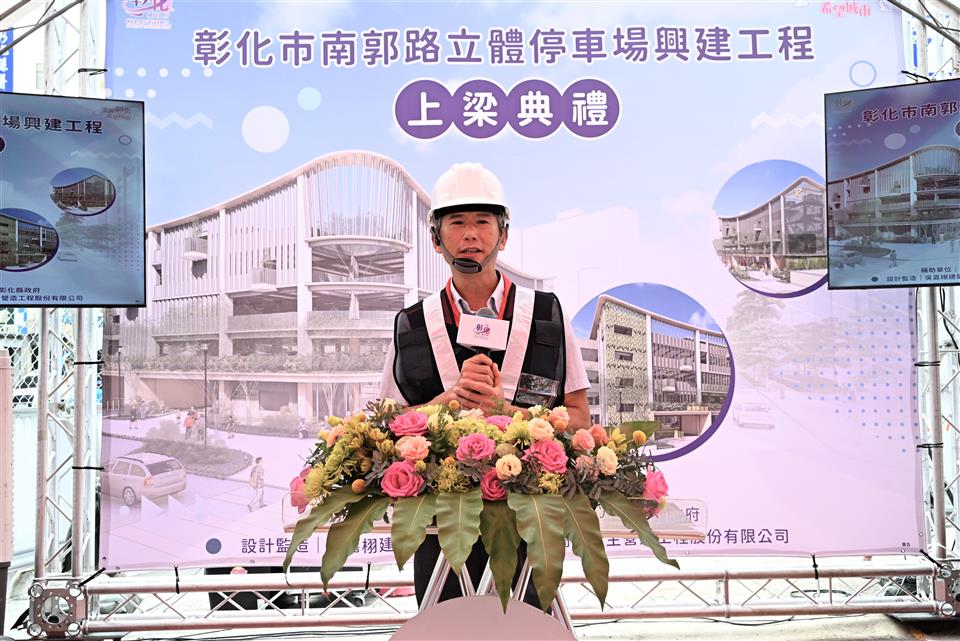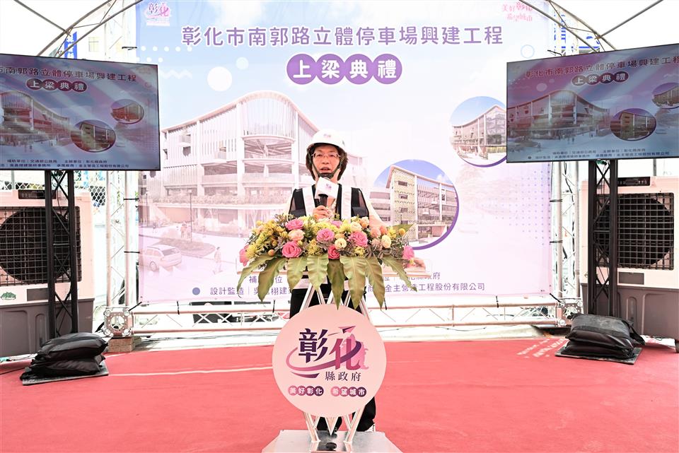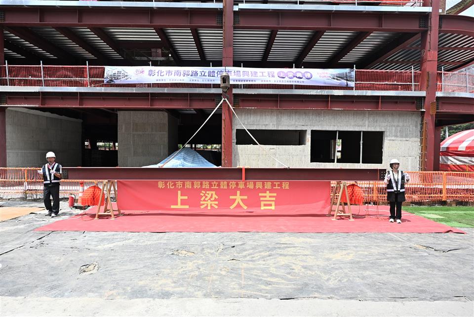彰化縣政府於今(20)日在縣府大樓旁南郭路立體停車場興建工程基地舉行上梁典禮,由彰化縣長王惠美主持,象徵工程邁入新階段。為澈底改善縣府、永樂街及彰基商圈長年停車空間不足的問題,縣府爭取中央資源,成功獲得交通部公路局前瞻計畫補助2億3,260萬7,000元;縣府原先自籌2億1,196萬3,000元,為進一步擴大停車量能、提升公共資源效益,再追加9,500萬元經費,總工程經費達5億3,957萬元。全力打造地下1層、地上4層之大型現代化立體停車場。 王縣長表示,南郭路立體停車場位於市中心,完工後民眾在逛街、看病或洽公上都更便利。未來可提供280席汽車格及610席機車格,並因應中央推動公務車輛電動化政策,停車場也規劃37席電動車格。在1樓的37坪商業空間將導入便利商店或輕食服務;並打造舒適人行環境,停車場出入口設置避車彎;加深進場儲車空間及智慧化停管設施,改善以往車輛排隊進場占用道路情形。讓縣民朋友停車更便利,生活機能更完善。 王縣長指出,工程預計於115年11月完工。縣府要求工程團隊兼顧工程品質、安全及周邊環境,盡量降低對附近居民的影響。本工程獲得環境部「114年營建工程環境保護卓越獎金級獎」、「優良噪音管制特別獎」及「本縣優良工地」等獎項肯定,展現施工團隊在工程管理、環境保護上的努力成果。同時感謝交通部公路局、立委,以及議長謝典霖與所有議員對本案預算的支持,讓縣府得以順利推動重大建設,回應縣民對停車空間的期待。 交通部公路局中區養護工程分局交通管理及控制中心主任郭純鑑表示,在王縣長縣府團隊的努力下,彰化縣有6座停車場獲得中央補助,金額高達8億751萬元,未來將能提供給民眾更便利的停車空間。 交通處表示,南郭路立體停車場以模矩化概念建構梁柱系統,提升結構效率與空間彈性;立面設計結合擴張網與垂直綠帶,引入自然採光與通風。更擷取本縣傳統廟宇「歇山頂」昂揚向上的線條語彙,轉化為弧度天際造型,未來將成為南郭路上具有城市美感的新地標。近年持續推動交通建設,南郭路立體停車場不僅改善停車空間,更代表彰化朝向更宜居、更具城市競爭力的目標邁進。 與會貴賓有立法委員黃秀芳、交通部公路局中區養護工程主任郭純鑑、議員白玉如、陳銌銌、莊陞漢、温芝樺、李成濟、吳韋達、楊子賢、黃柏瑜、彰化市民代表會主席陳文賓、交通處長林孟弘、吳嘉栩建築師事務所技師張子綸、金主營造工程股份有限公司董事長劉江霖、總經理劉于豪、信暐鋼構股份有限公司總經理吳麗雀、各民意代表及地方仕紳等。