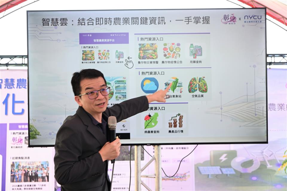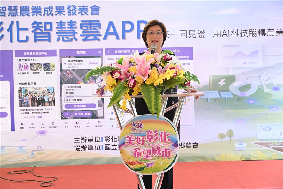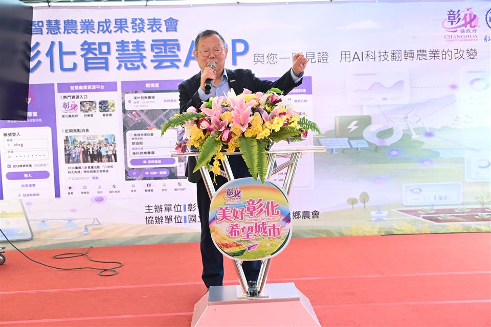 彰化縣政府今(27)日於彰化智慧雲溪州示範基地舉辦「115年度智慧農業成果發表會」,正式發表全台領先的農業科技結晶「彰化智慧雲APP」。彰化縣長王惠美、國立陽明交通大學校長林奇宏、農業部科技司及多位農業專家共同見證彰化農業升級的里程碑。現場展示如何透過科技將「冠軍經驗」轉化為「數位筆記」,讓農民僅需一支手機,就能精準掌握田間脈動,也向大家證明:彰化農業不只要「好品種」,更要搭配「好科技」! 王縣長表示,面對農村人口高齡化的挑戰,推動智慧農業轉型是吸引青年返鄉的基礎。彰化農林漁牧年產值高達610億元,感謝陽明交大用心研發APP,協助青農突破傳統務農勞動力重及技術門檻高的限制,將過去口耳相傳的巡田、放水與施肥等經驗,轉化為雲端大數據。同時感謝縣農會及地方農會的用心指導,彰化青農人數從就任初期8百多人成長至近3千人。 王縣長指出,科技導入農業,最終目的就是「讓農民賺到錢,也讓土地能永續」。目前第1期建置2種智慧雲APP,1種是芭樂,建置在溪州及社頭,另1種是葡萄,建置在溪湖及大村。後續還會針對二林紅龍果、永靖香瓜進行建置。目標建立「一鄉一智慧雲」,引領農業跨越科學門檻,提升產值也創造更優渥的收益。 王縣長表示,這次的「彰化智慧雲APP」有6個厚禮要送給農民: 第一、大數據傳承「冠軍筆記」:邀請20位縣級評鑑得獎的葡萄與芭樂「冠軍老師傅」,將他們的耕作數據轉化成科學參數,讓新手農民打開APP,就能參考冠軍的灌溉及施肥祕訣,不用自己瞎摸索。 第二、「24小時巡田水」:系統涵蓋14項環境指標,包含氣溫、濕度、土壤pH值與肥力等,每15至20秒即時上傳雲端,遇到氣候異常時,警戒通知每3分鐘推播至手機。以後在家喝咖啡,手機一滑就能掌握田間的細微變化,不必再風吹日曬。 第三、「科學化爭取農損救助」:以前災後申請農損救助,要證明雨下多少、溫差多大,極為困難。現在彰化提供智慧雲數據,透過數據向中央爭取「農業天然災害-氣候型參數」現金救助,讓農友損失能第一時間獲得補償。 第四、「一站式農業秘書」:災害預警、市場行情、採收建議,全部整合在一個APP。一機在手,掌握全局。 第五、「科技平權,免費下載」:科技不應只是少數人的專利,我們將「彰化智慧雲APP」公開上架,不論是蘋果或安卓手機皆可下載APP免費使用。即便田間沒裝感測器,也能共享這朵「雲」帶來的科技紅利。 第六、打造「土壤健康存摺」:我們結合全縣35家農會與農藥行,提供免費土壤檢測,如:土壤溫度、濕度、酸鹼值(pH)、導電度(EC)、氮(N)、磷(P)、鉀(K)等。透過專屬「土壤健康存摺」,對照「冠軍得獎者數據」精準施肥,不但省肥料錢,還能隨時掌握土壤變化,全面提升作物質量! 國立陽明交通大學校長林奇宏表示,「彰化智慧雲APP」可說是大學社會責任的重要實踐,陳文亮教授就是實踐的最佳典範。透過大數據分析,農業能依據台灣不同季節與海拔調整作物生產,全年維持優良品質。同時大數據也可應用於災害後損失評估,未來更可結合智慧醫療,兼顧農業發展與民眾健康。 溪州青農曾虹蓁表示,走入 AI 時代,這APP對農民非常有幫助,只要透過手機就可以觀測各種數據,控制好肥料、濕度、排水,減少損害並提高作物質量。 農業處表示,縣府這兩年跟陽明交通大學合作,投入300萬元、在4個鄉鎮建置監控設備,期盼用這套「彰化智慧雲APP」,幫農友達成「師傅在身邊」的目標。該系統採用先進的IoTtalk物聯網平台,確保數據傳輸的高穩定度。歡迎廣大農友踴躍下載「彰化智慧雲APP」,共同開創智慧農業的新盛世。 與會貴賓還有溪州鄉長江淑芬、廣達-陽明交大聯合AI研究中心主任陳文亮、溪州鄉農會理事長廖信東、總幹事彭顯賦、農業部農業科技司研究發展科長黃明雅、農業試驗所植物病理組副研究員蘇俊峯、東海大學智慧暨精緻農業學位學程教授兼主任劉程煒、農業處長郭至善、各級民意代表與地方仕紳等人。